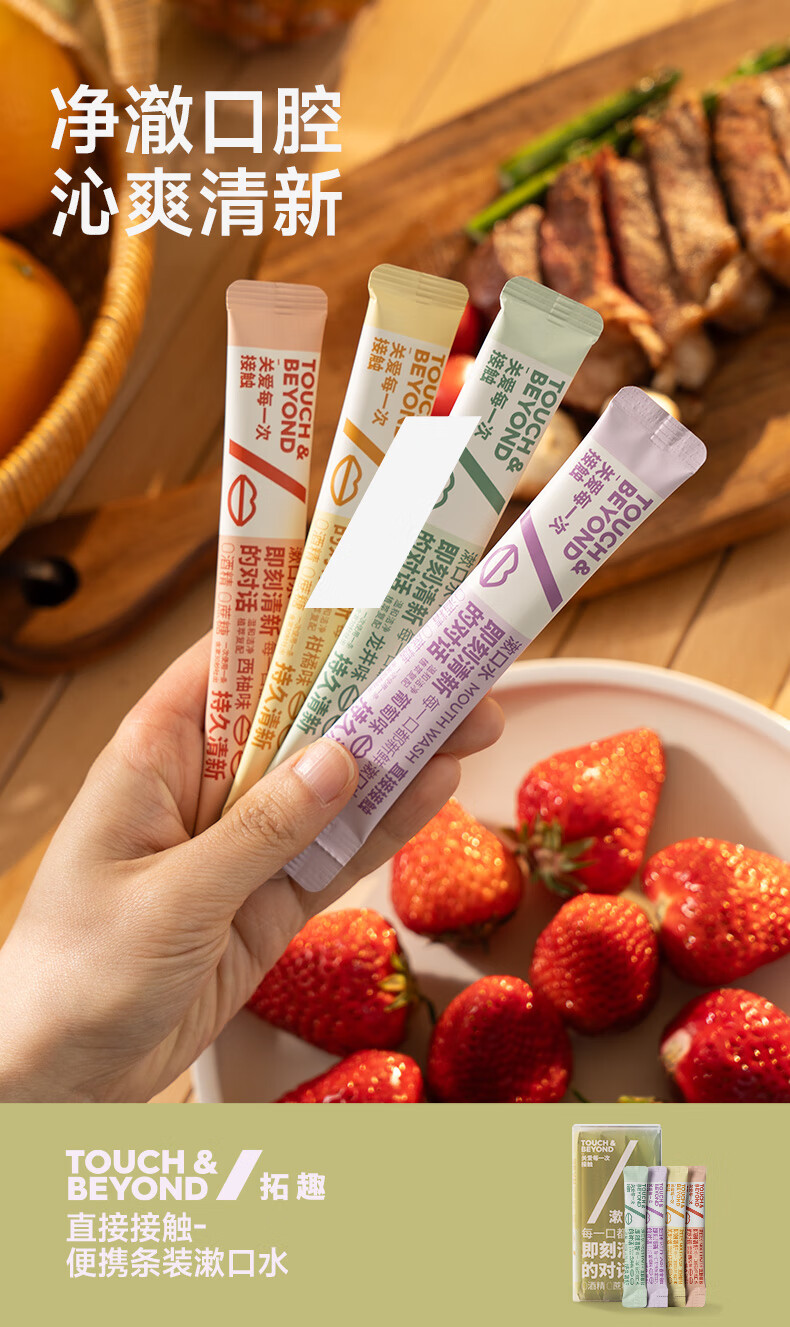 TOUCH & BEYOND拓趣 · 漱口水便携条装一次性独立小包装旅行装清新口气留香口腔护理 【热销款】混合4口味 20条|品牌直发