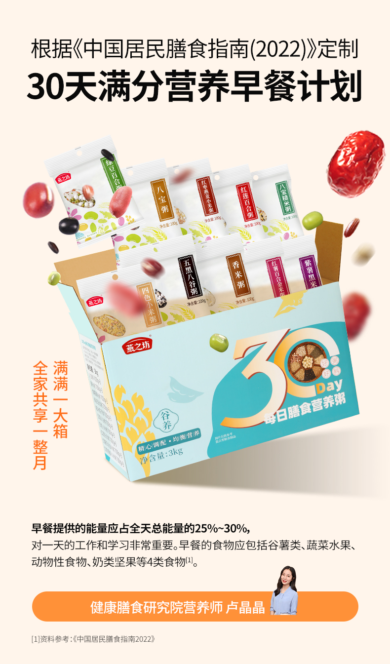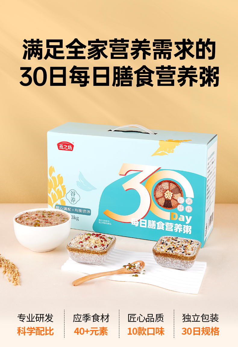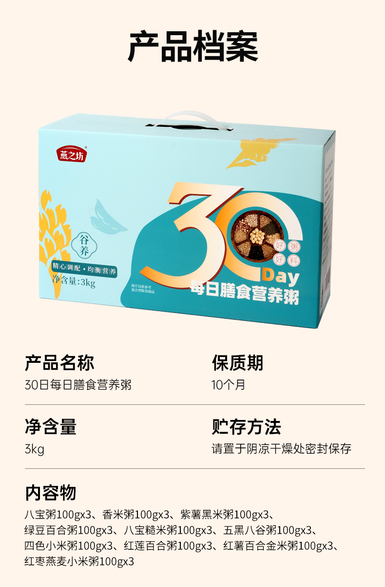 燕之坊30日膳食营养粥3kg 腊八粥谷物八宝五谷杂粮每日早餐礼盒10种口味