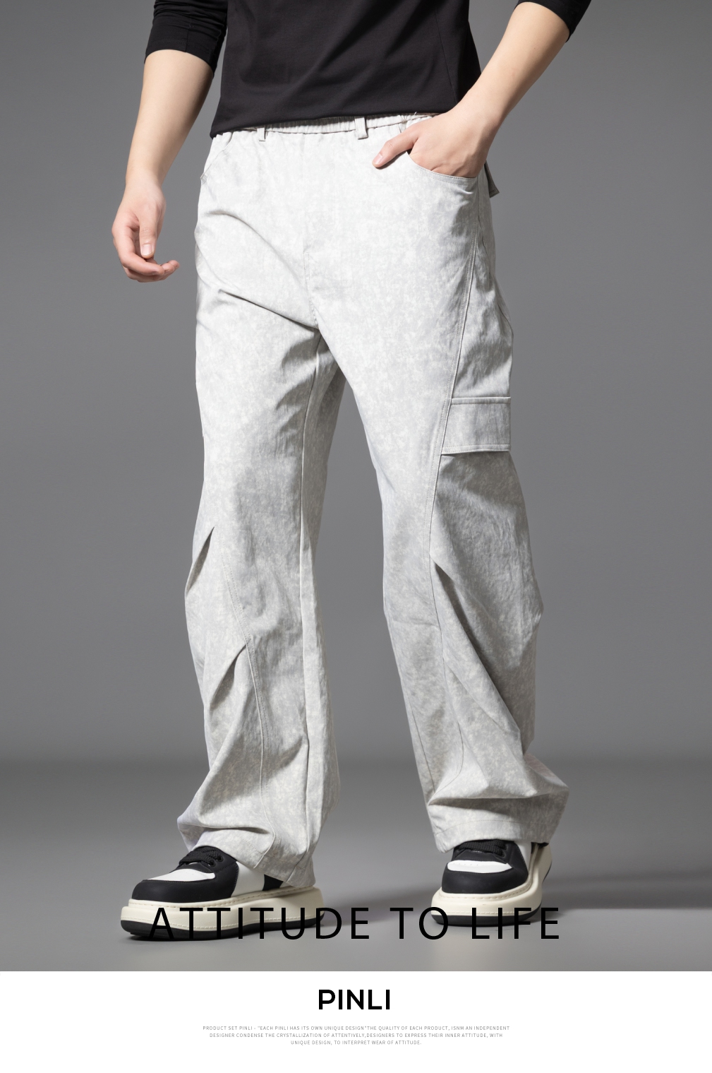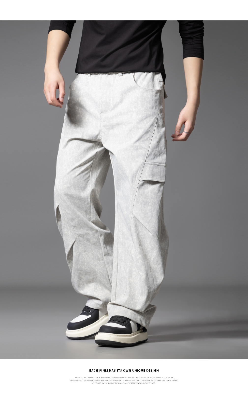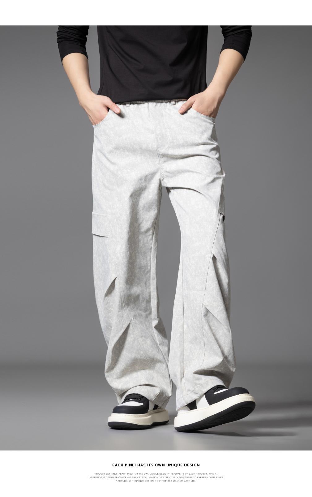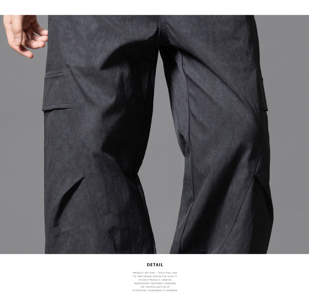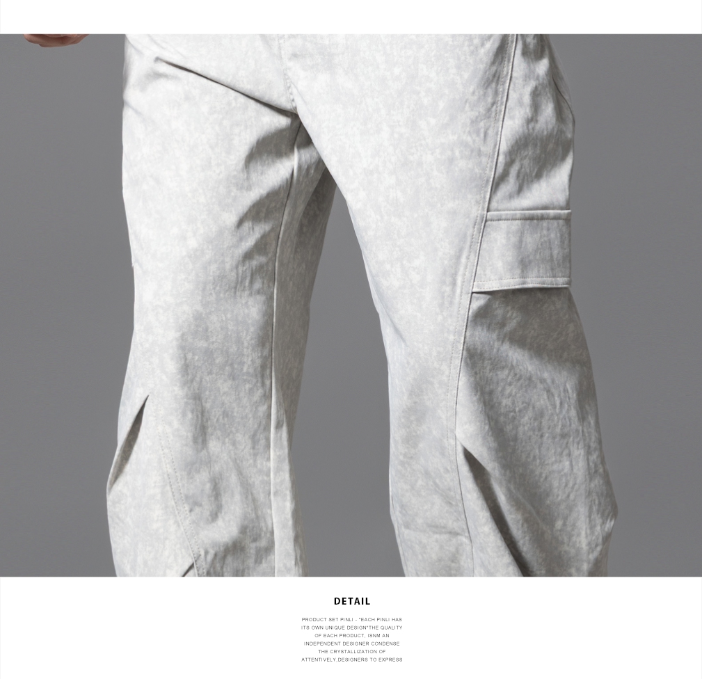 PINLI品立2025秋季新款雪花褶皱宽松工装裤男士潮牌休闲直筒长裤GD253117023