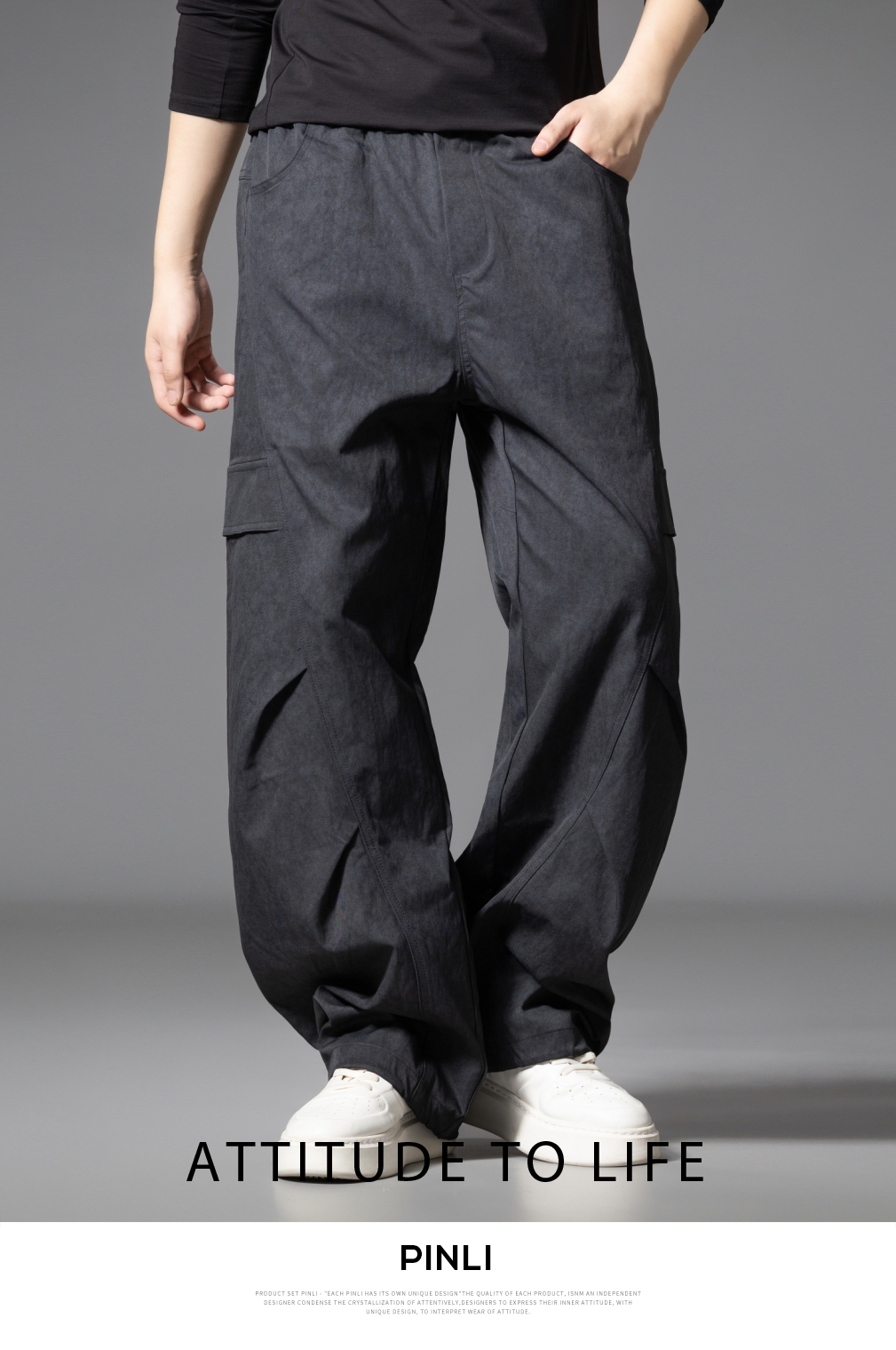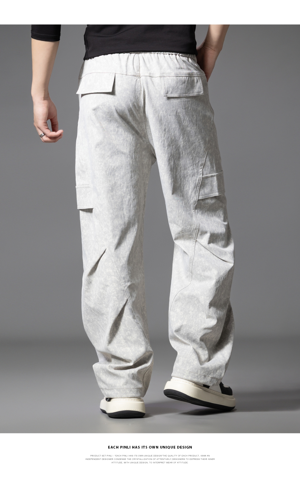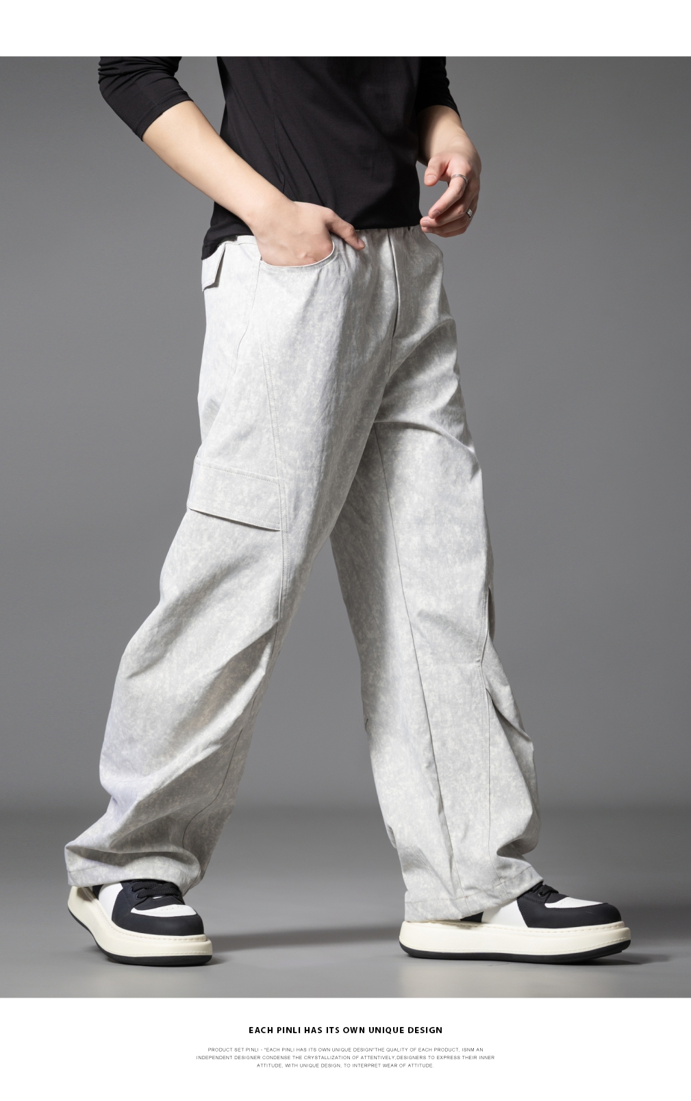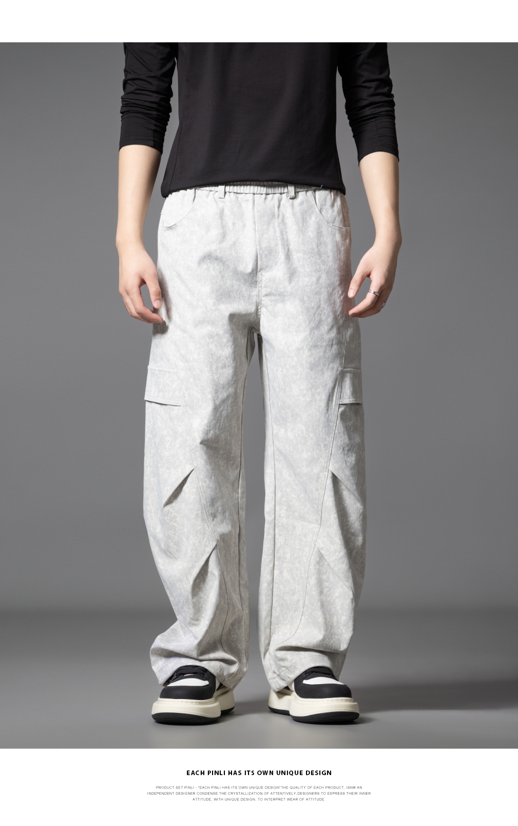PINLI品立2025秋季新款雪花褶皱宽松工装裤男士潮牌休闲直筒长裤GD253117023
