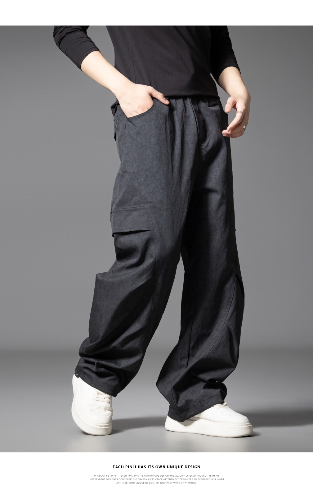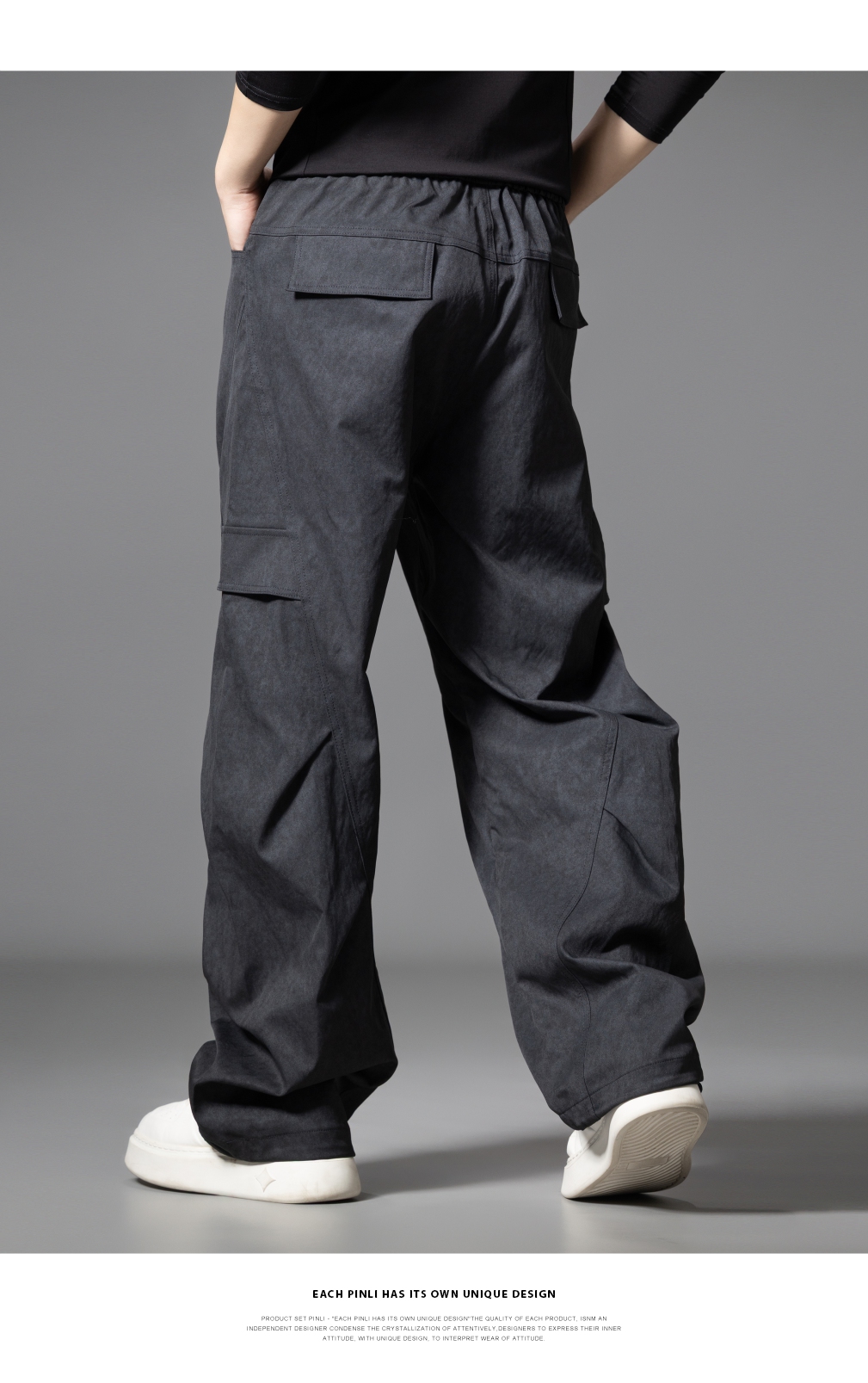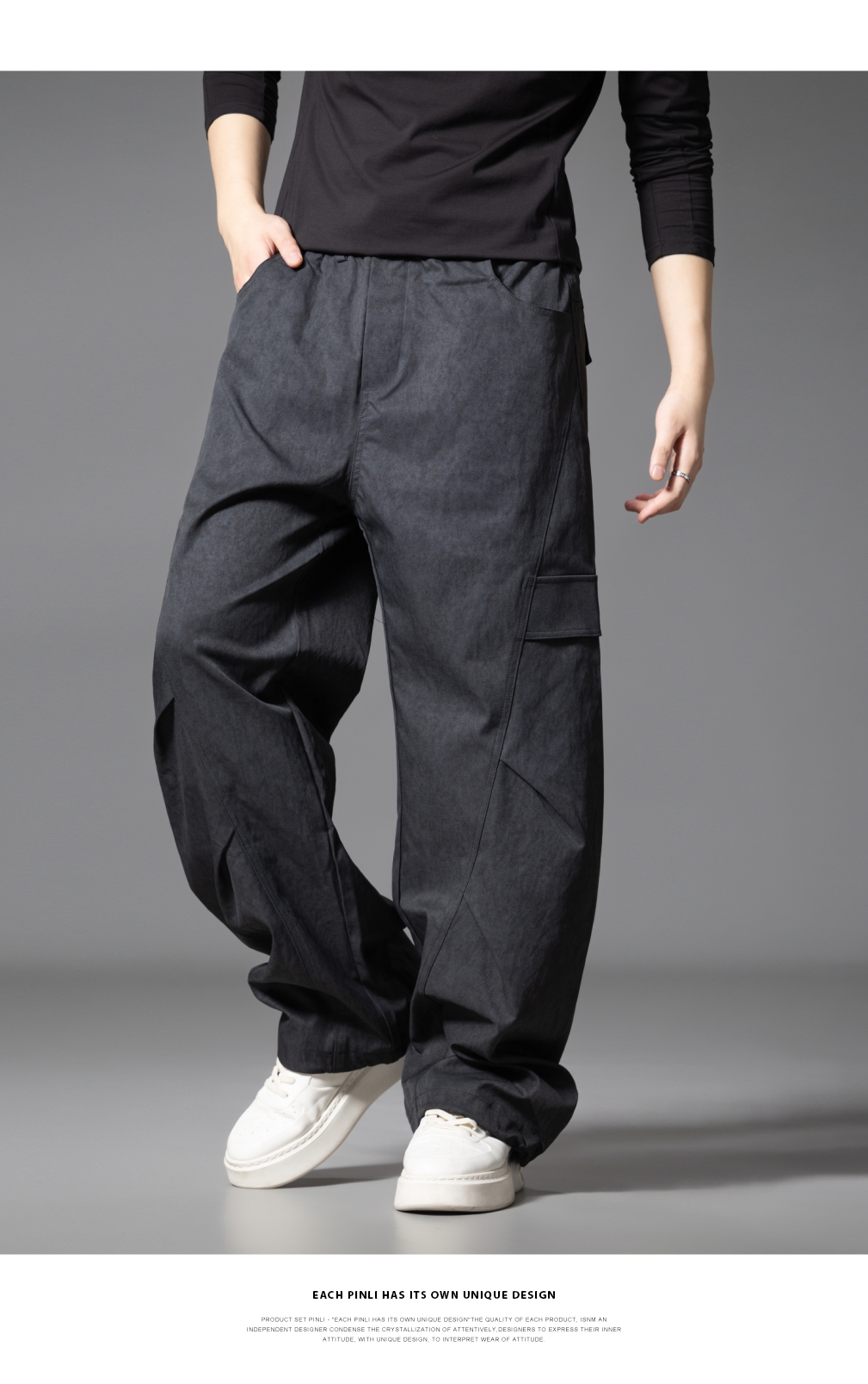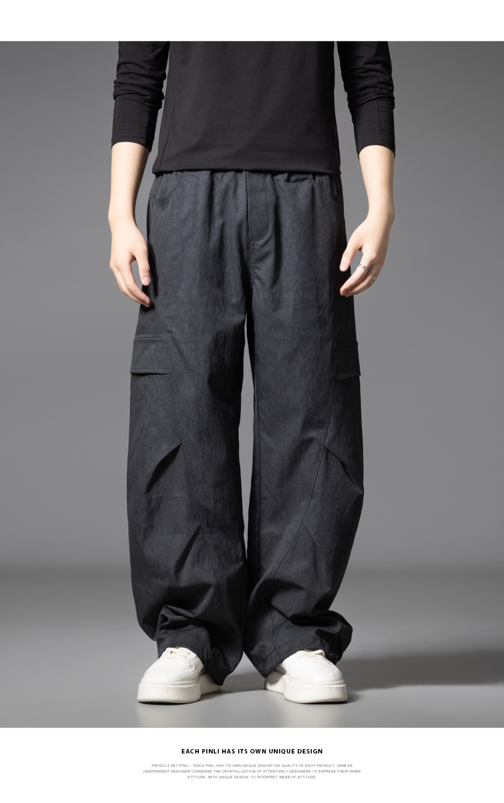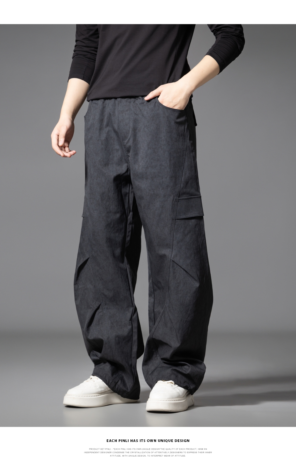 PINLI品立2025秋季新款雪花褶皱宽松工装裤男士潮牌休闲直筒长裤GD253117023