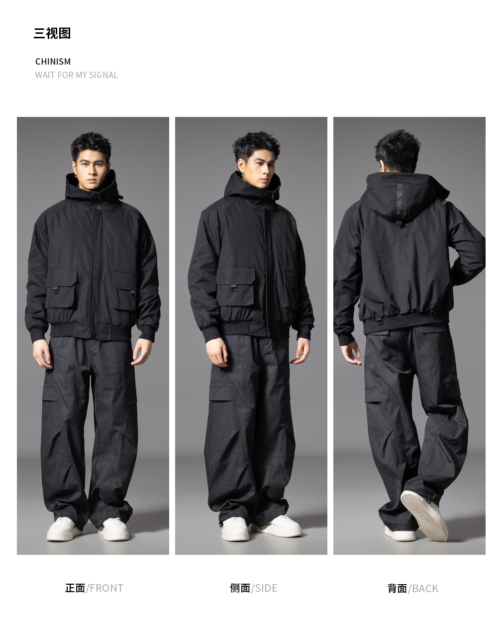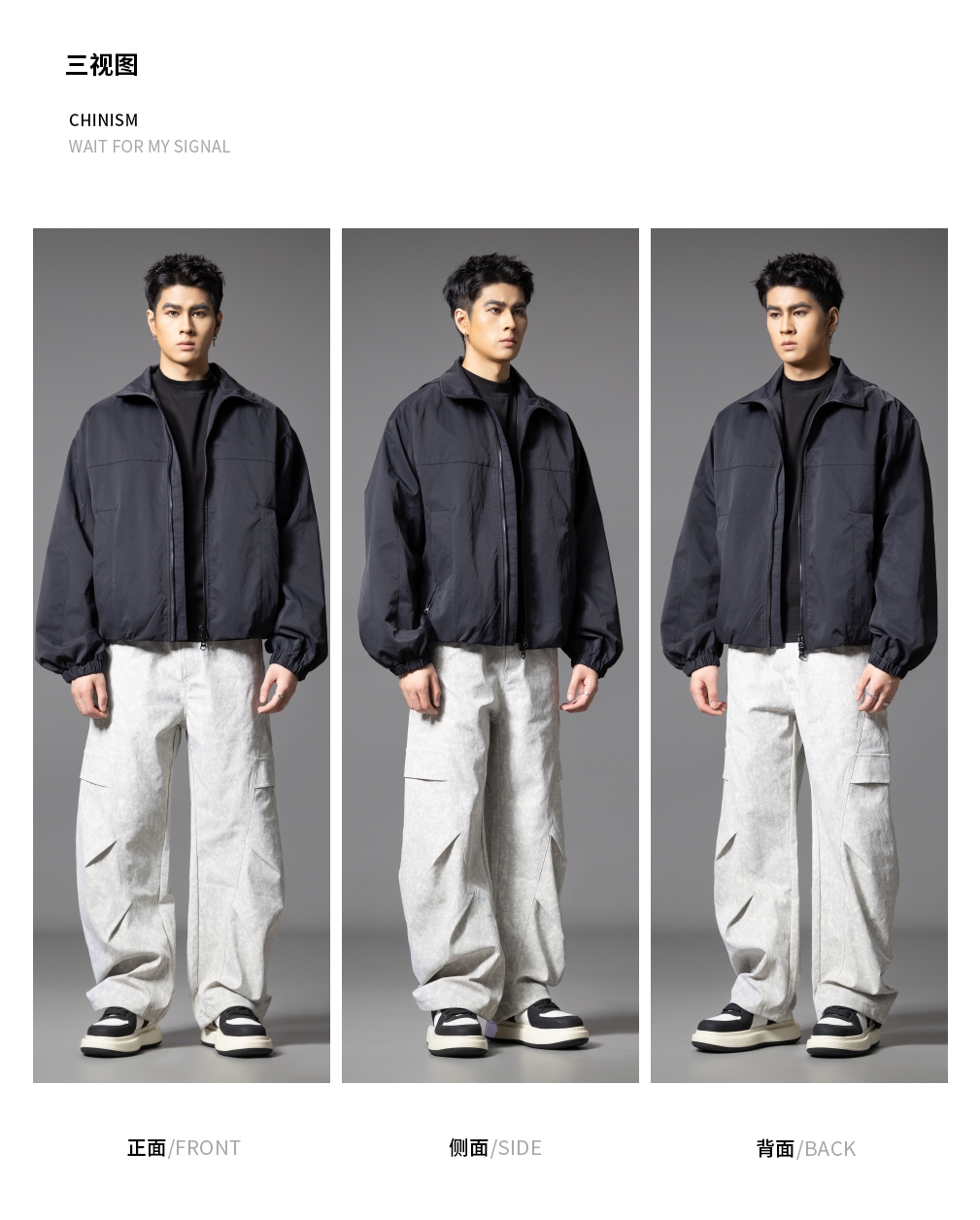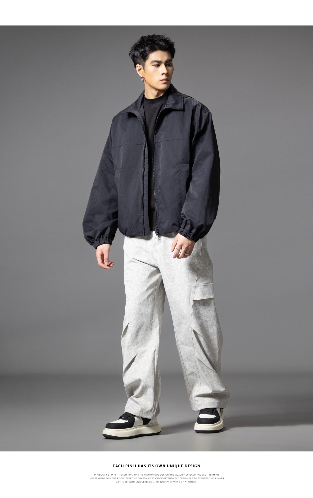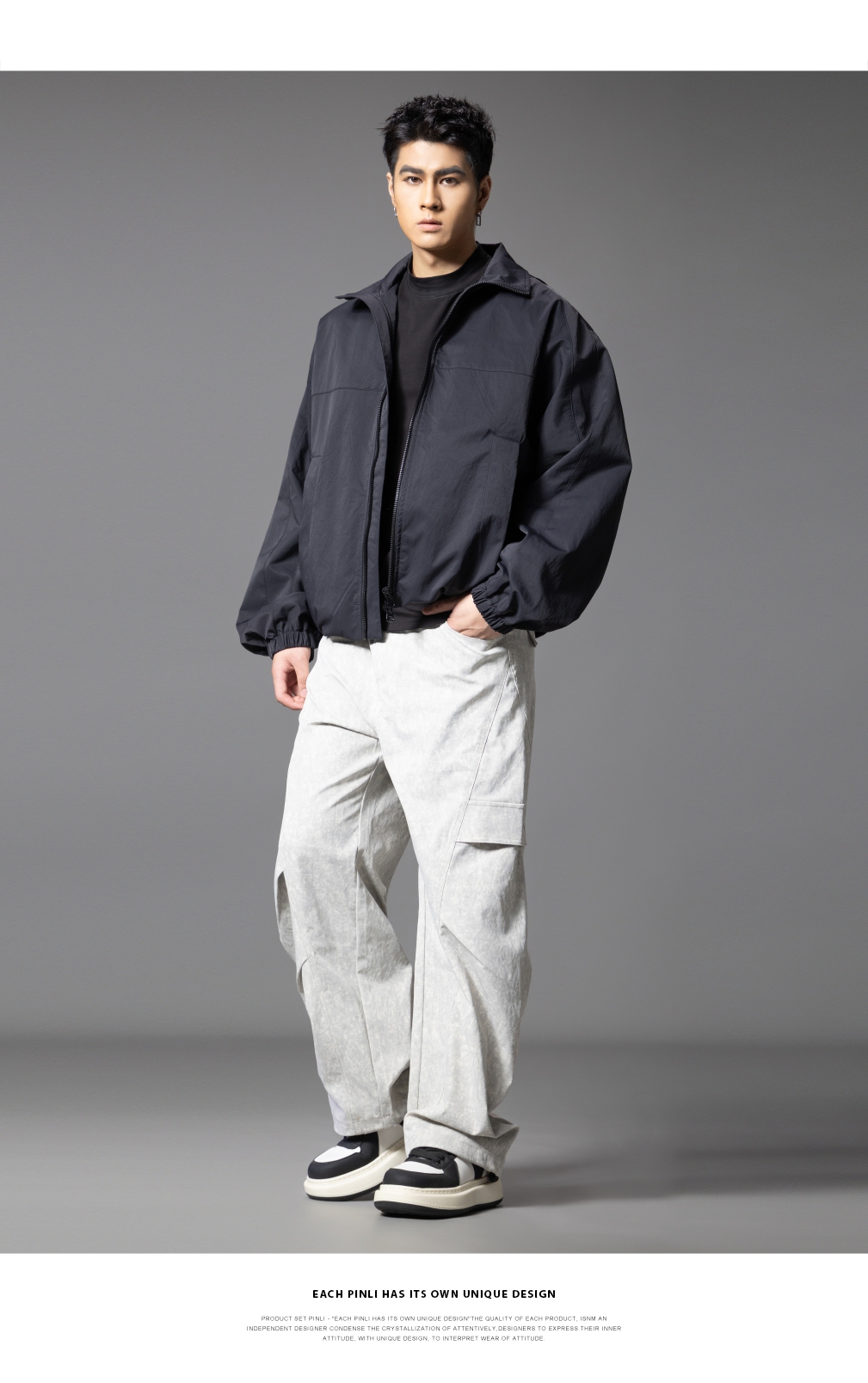 PINLI品立2025秋季新款雪花褶皱宽松工装裤男士潮牌休闲直筒长裤GD253117023