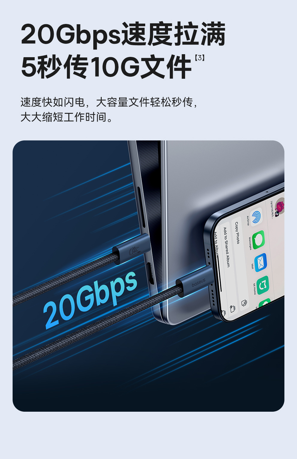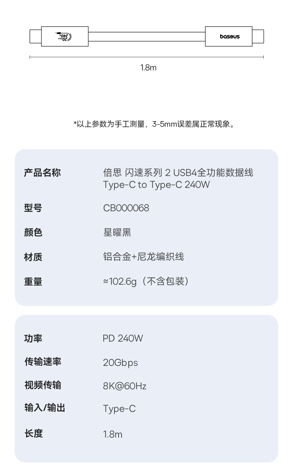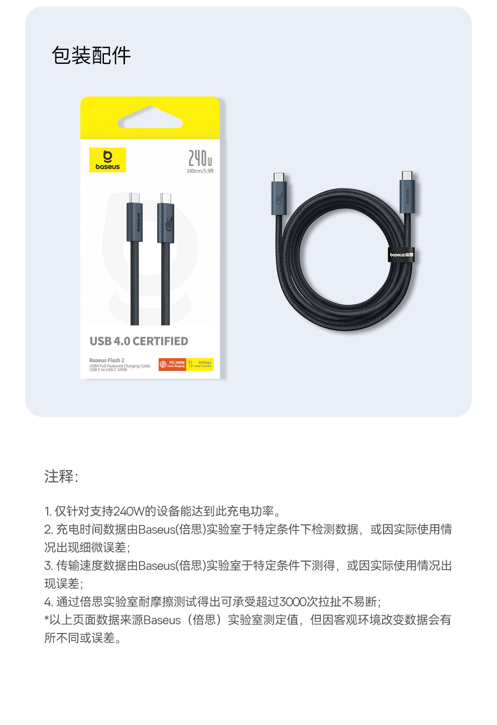 倍思 闪速系列 2 USB4全功能数据线 Type-C to Type-C 240W