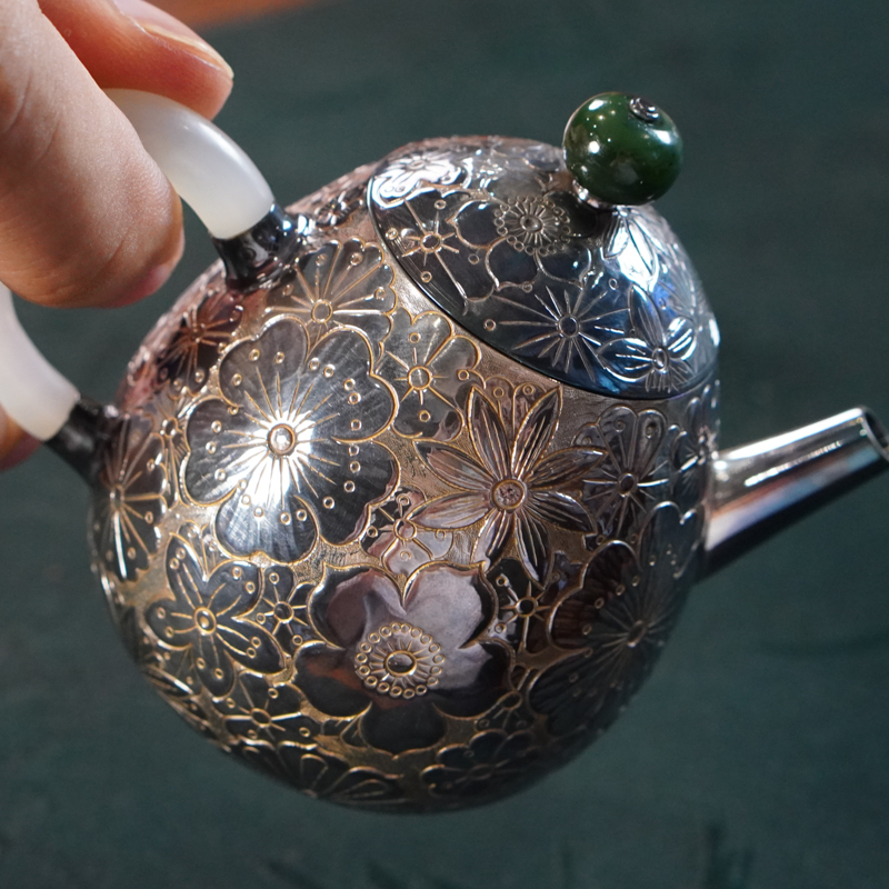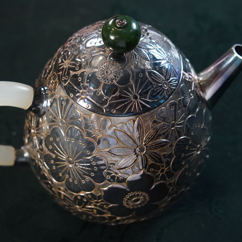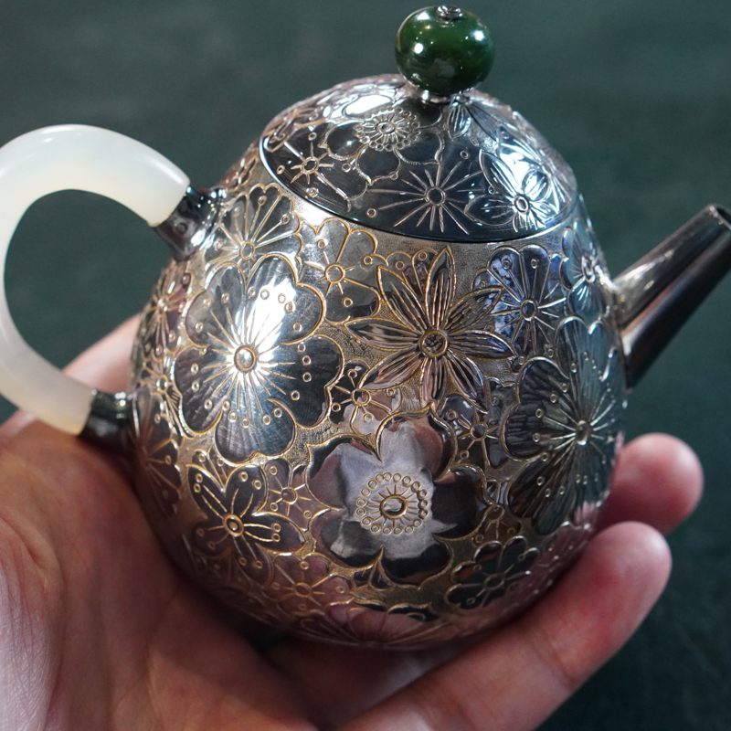 繁花似锦玉柄龙蛋银壶 约110g左右