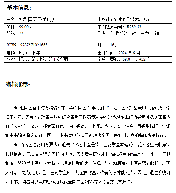 名老中医临证必选方剂系列丛书:妇科国医圣手时方彭清华雷磊