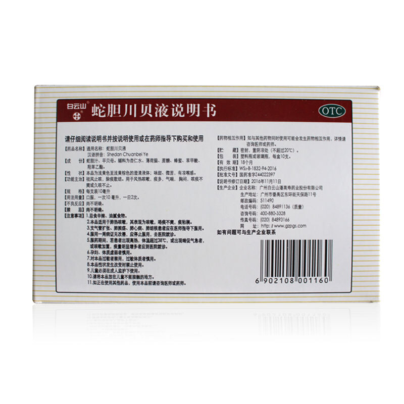 潘高寿蛇胆川贝液10支风热咳嗽 痰多 气喘 胸闷 咳痰不爽 久咳