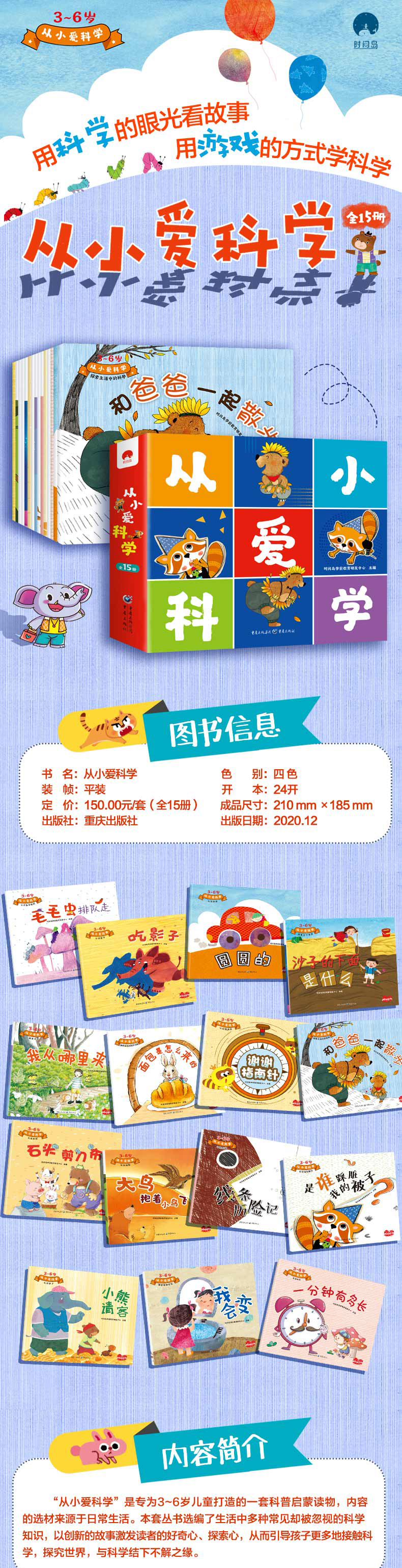 【科学启蒙】从小爱科学(全15册)赠15张贴纸 根据幼儿园教材改编 用科学的眼光看故事 用游戏的方式学科学