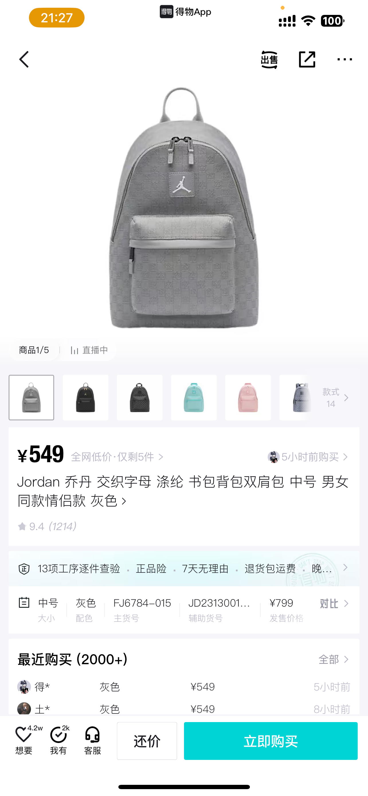 三色 ! 独家 Jordan经典永续|老花交织字母双肩包男女同款 双肩包 背包书包 43.2*31.8*15.2 交织双肩包