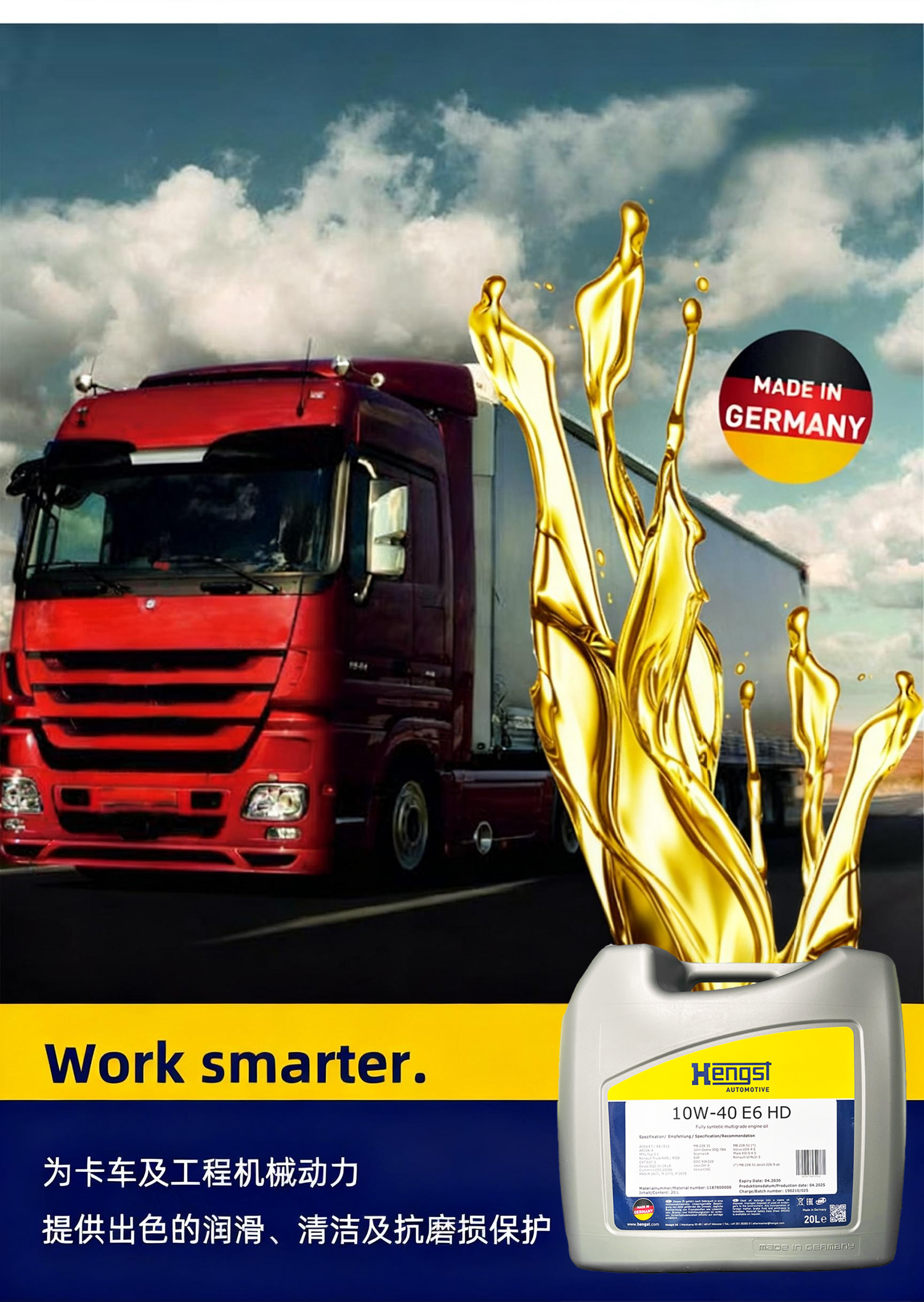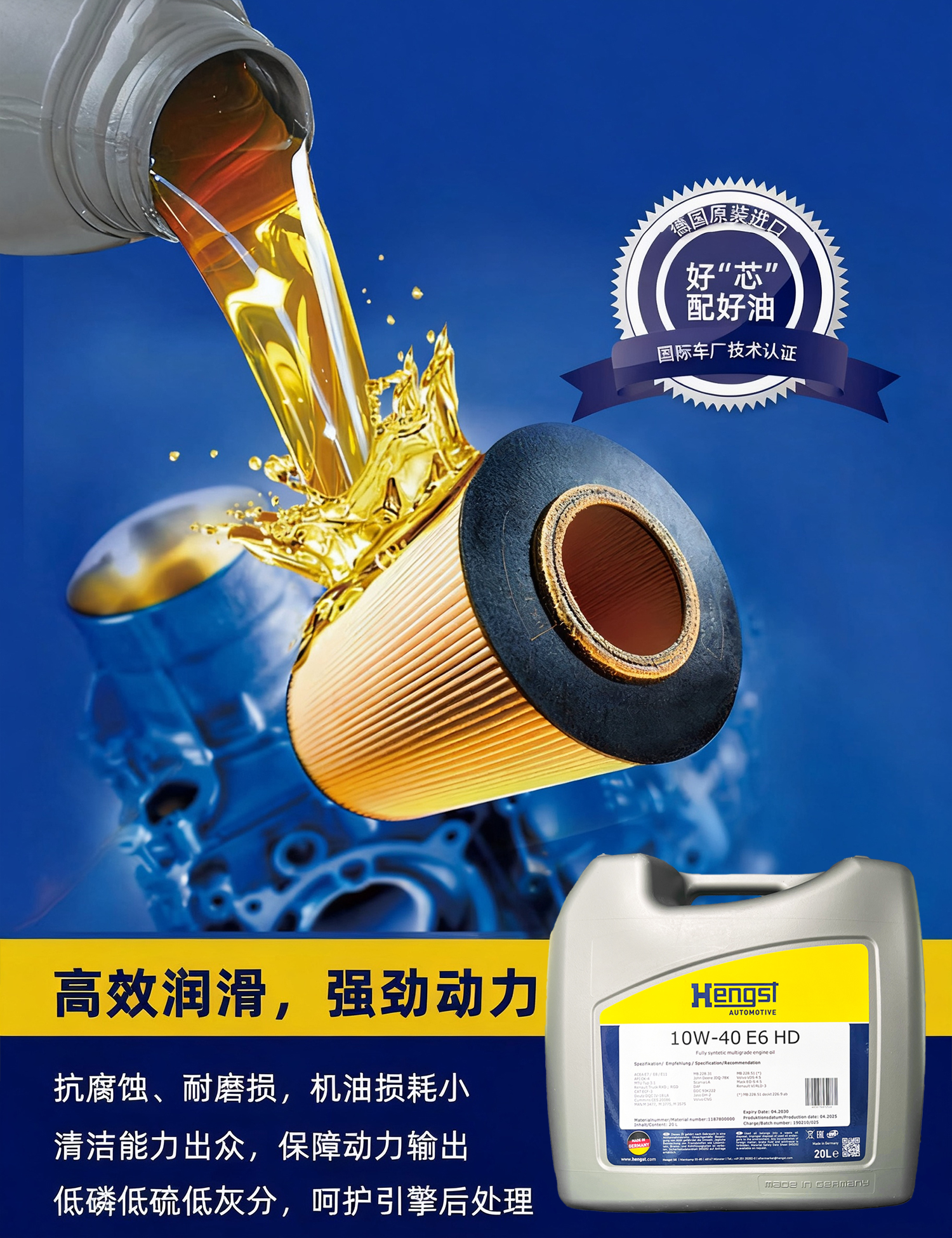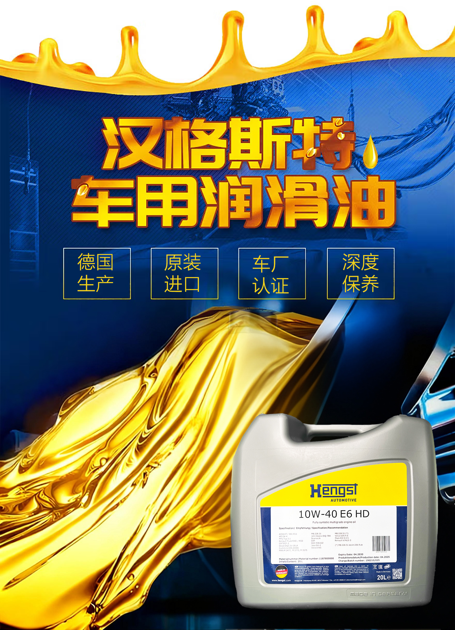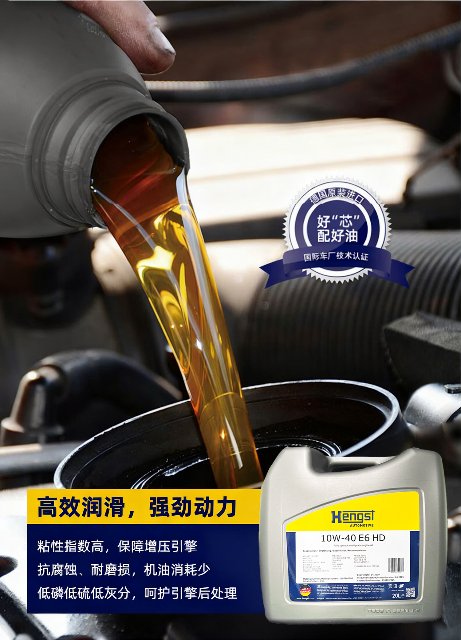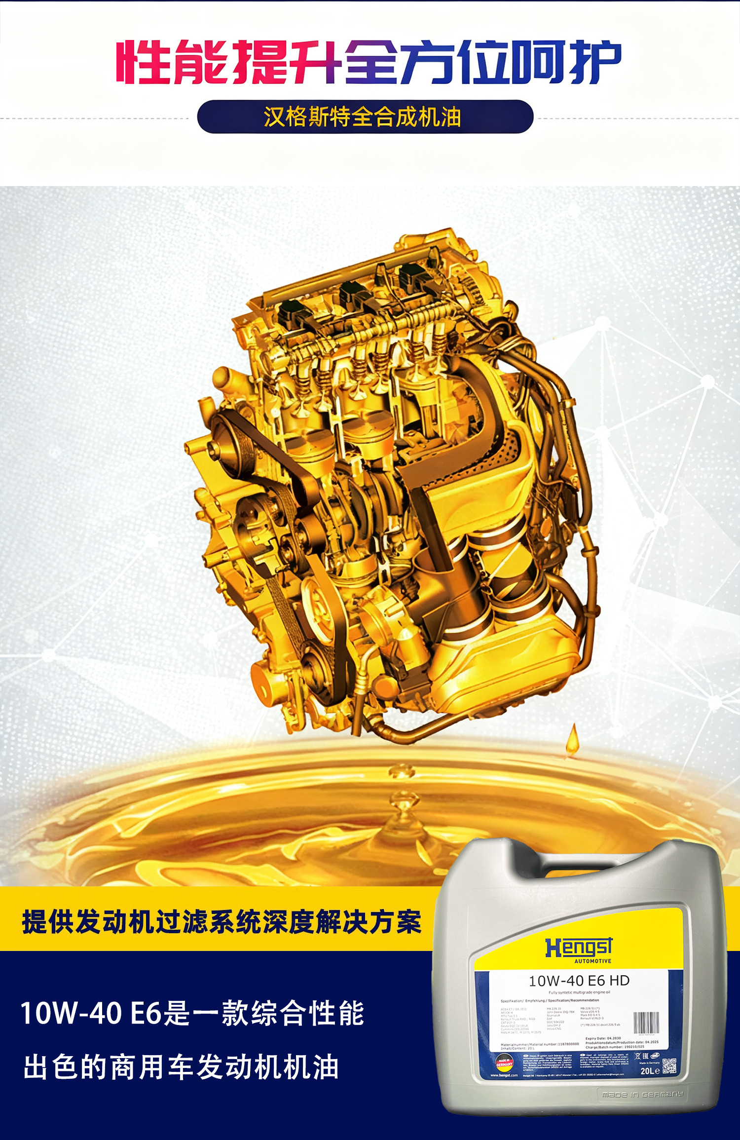 汉格斯特E6国六柴机油10万公里20L燃油燃气发动机通用