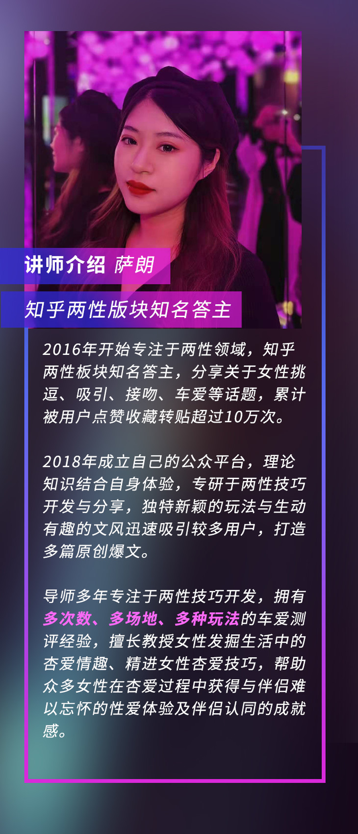 - 国内女性愉悦领域开创者,性健康咨询培训颁证机构,我们希望用前沿的愉悦指南与专业课程,提升女性身心成长与两性愉悦认知,帮助每个人爱上自己、勇敢去浪!