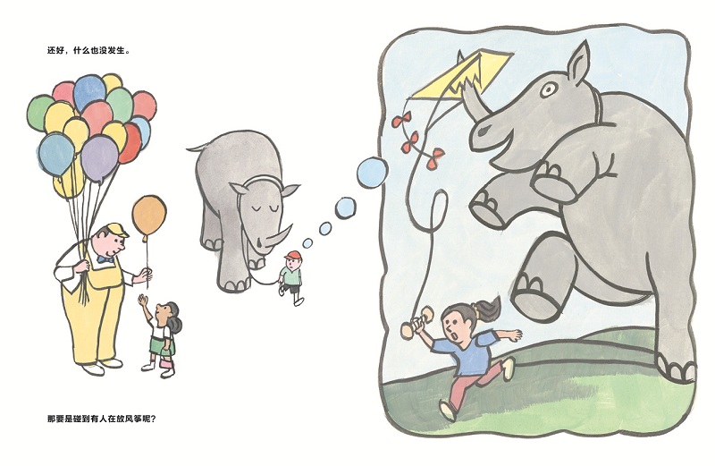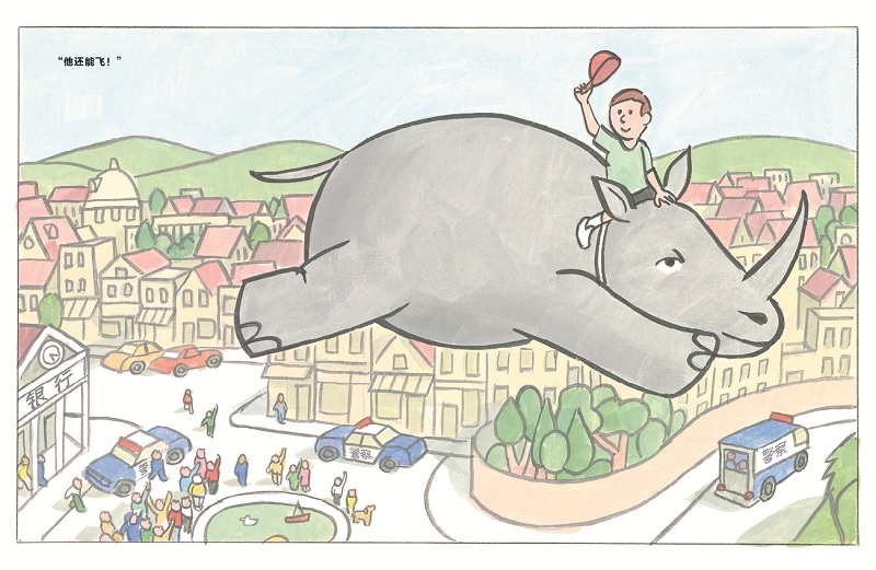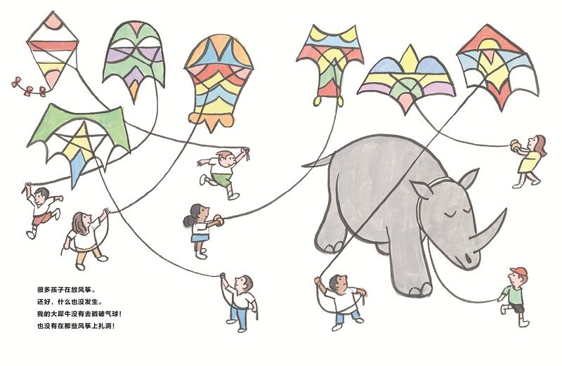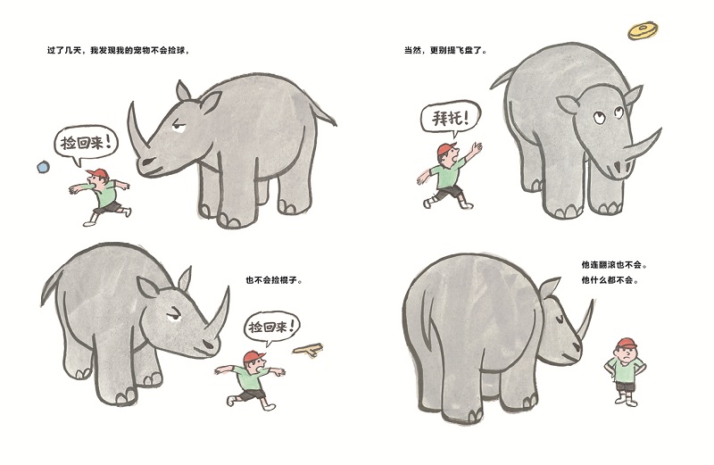 (7)引导孩子分享自己养宠物时,是否发现了一些让他们惊讶的事情,比如故事里的大犀牛让小男孩惊讶的飞行能力;