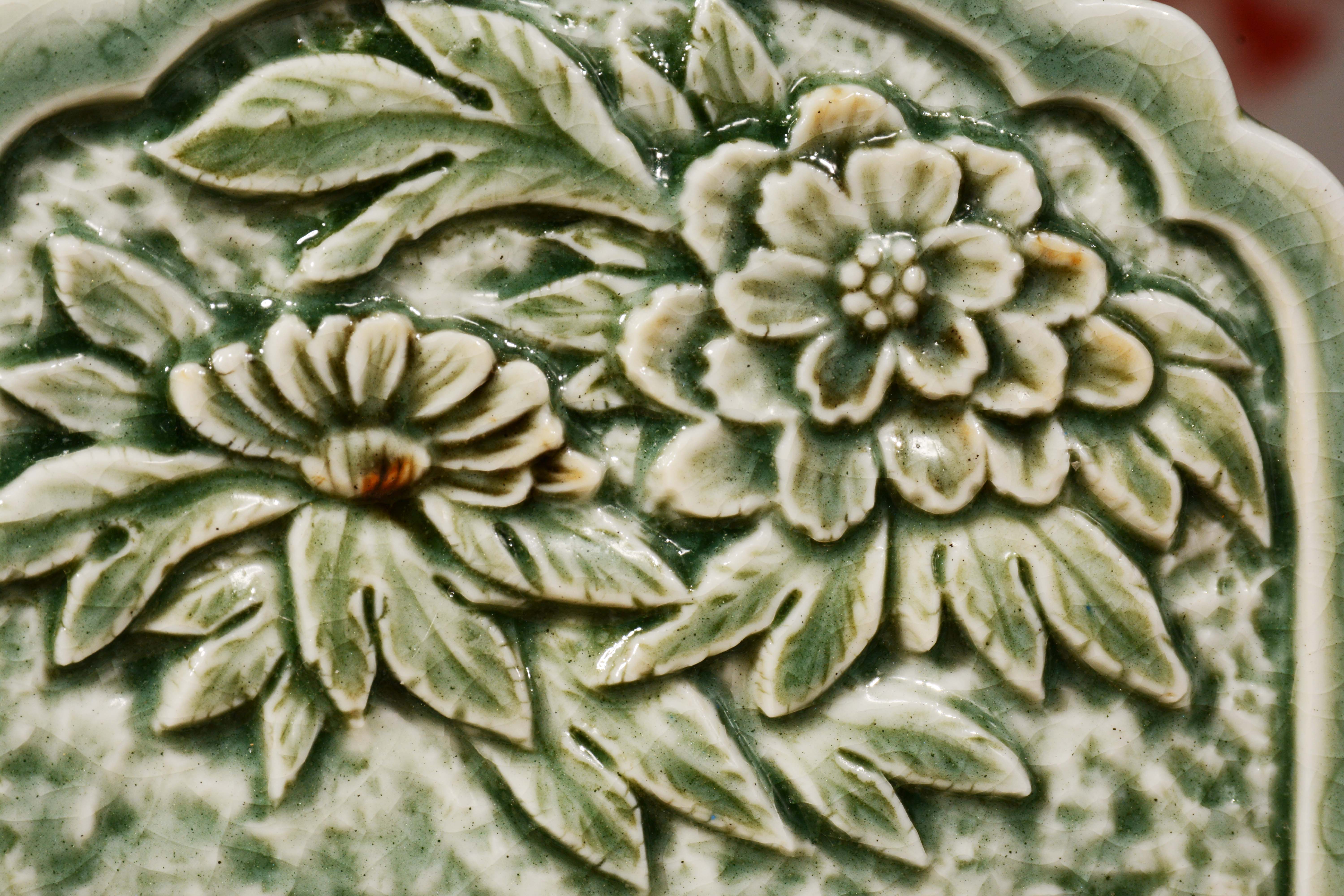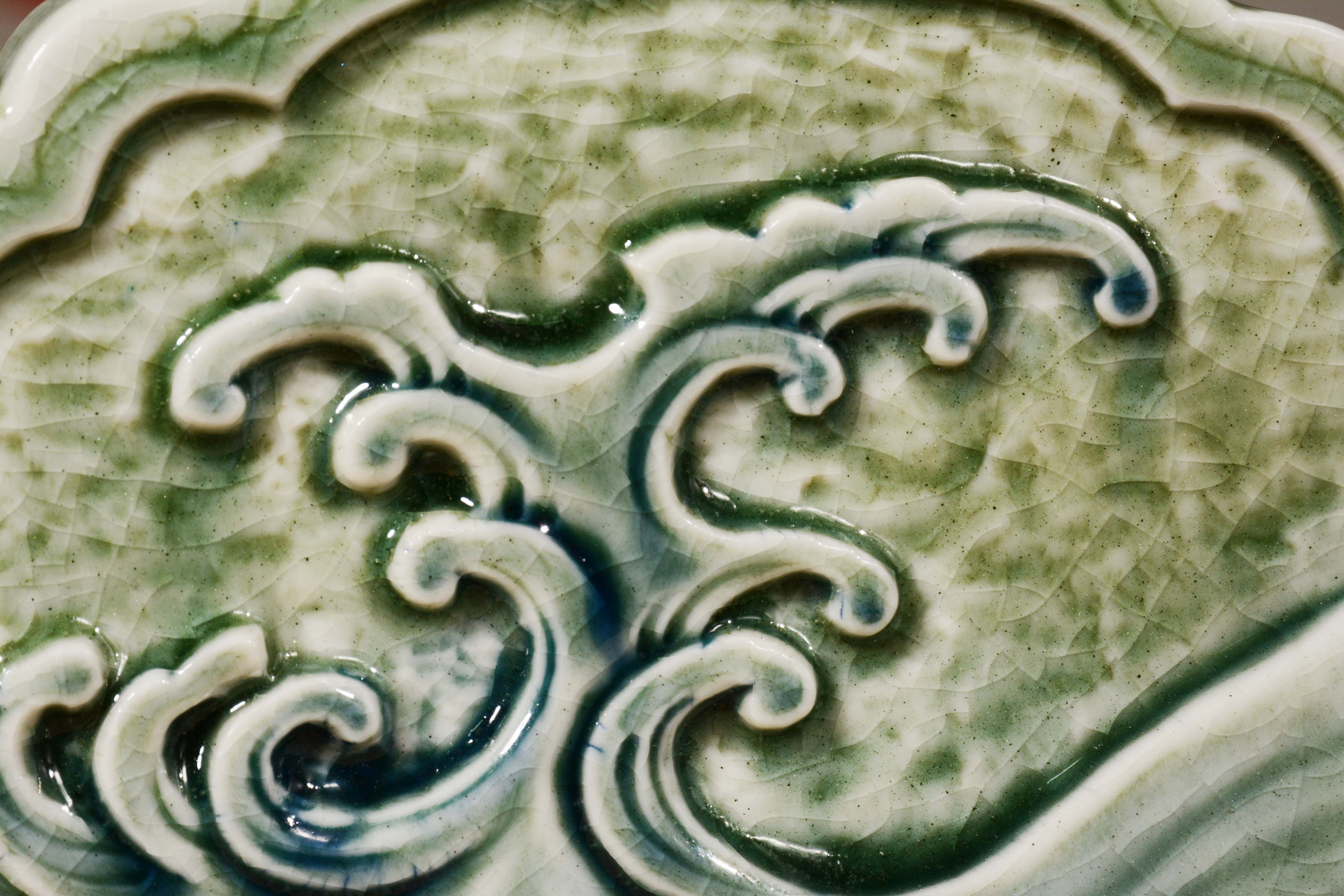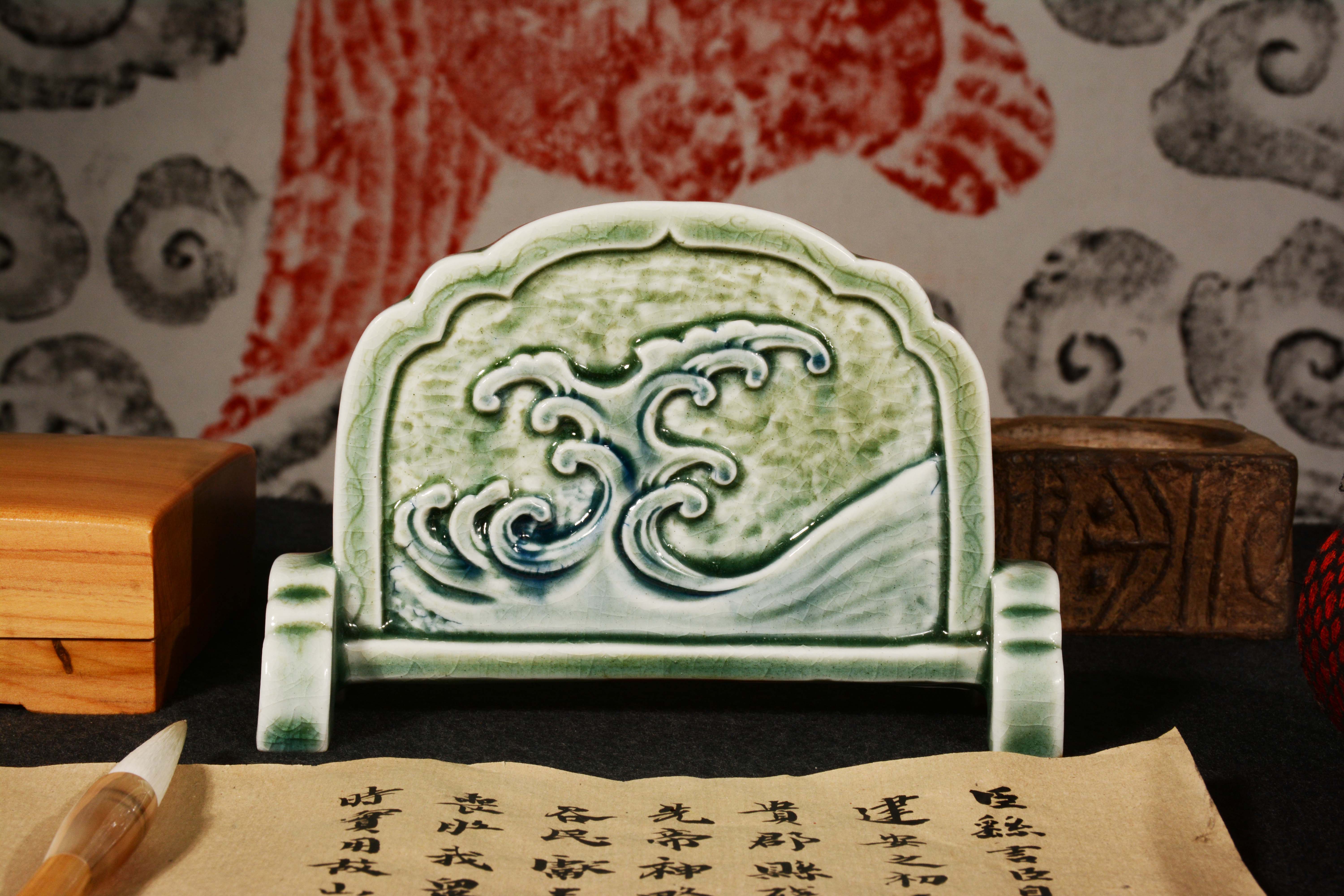 此件的双面雕刻花卉纹和大海纹,瓷质细腻,剔透莹润,具有较高的收藏价值,与实用价值结合完美。