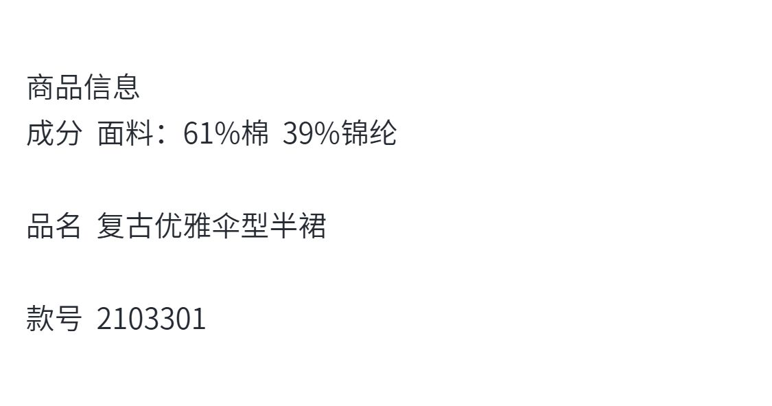 定制—复古优雅风—遮肉修饰腿型显瘦百搭时尚伞型半身裙 2103301