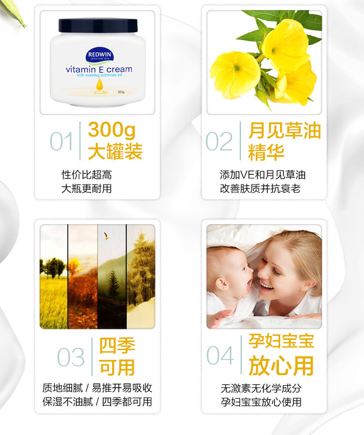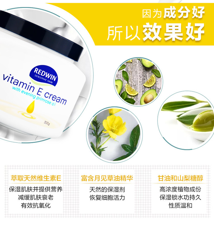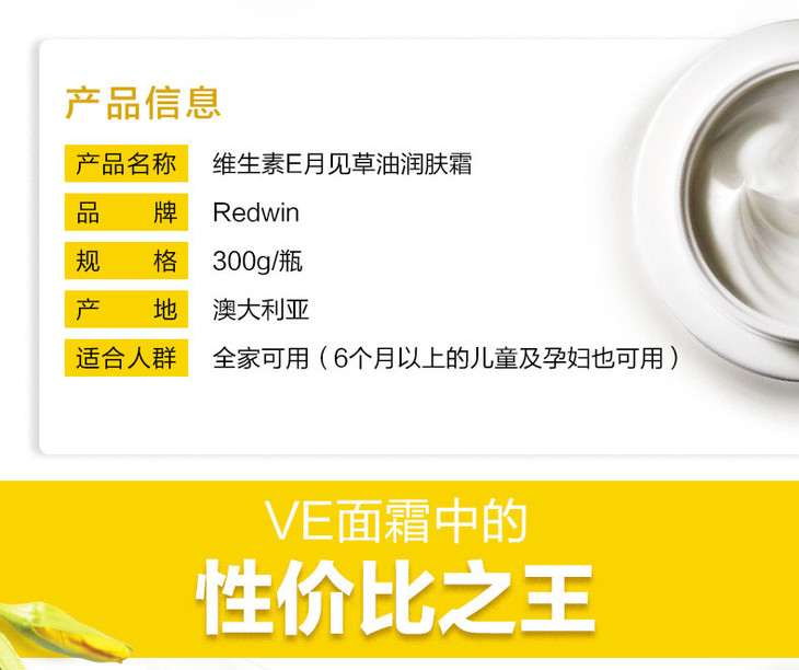 【保税区包邮直发】两罐 澳洲 Redwin 月见草油维生素E润肤霜 300g*2