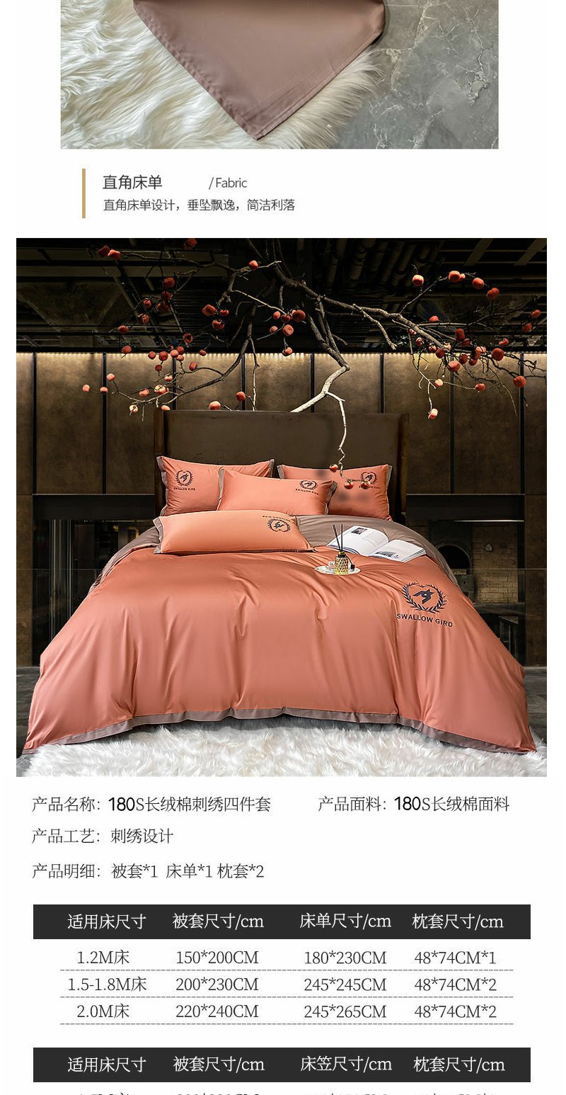 轻奢a类母婴级180支新疆长绒棉全棉四件套棉被套床