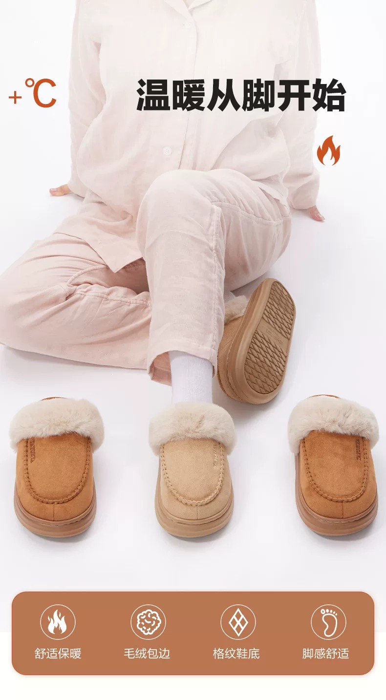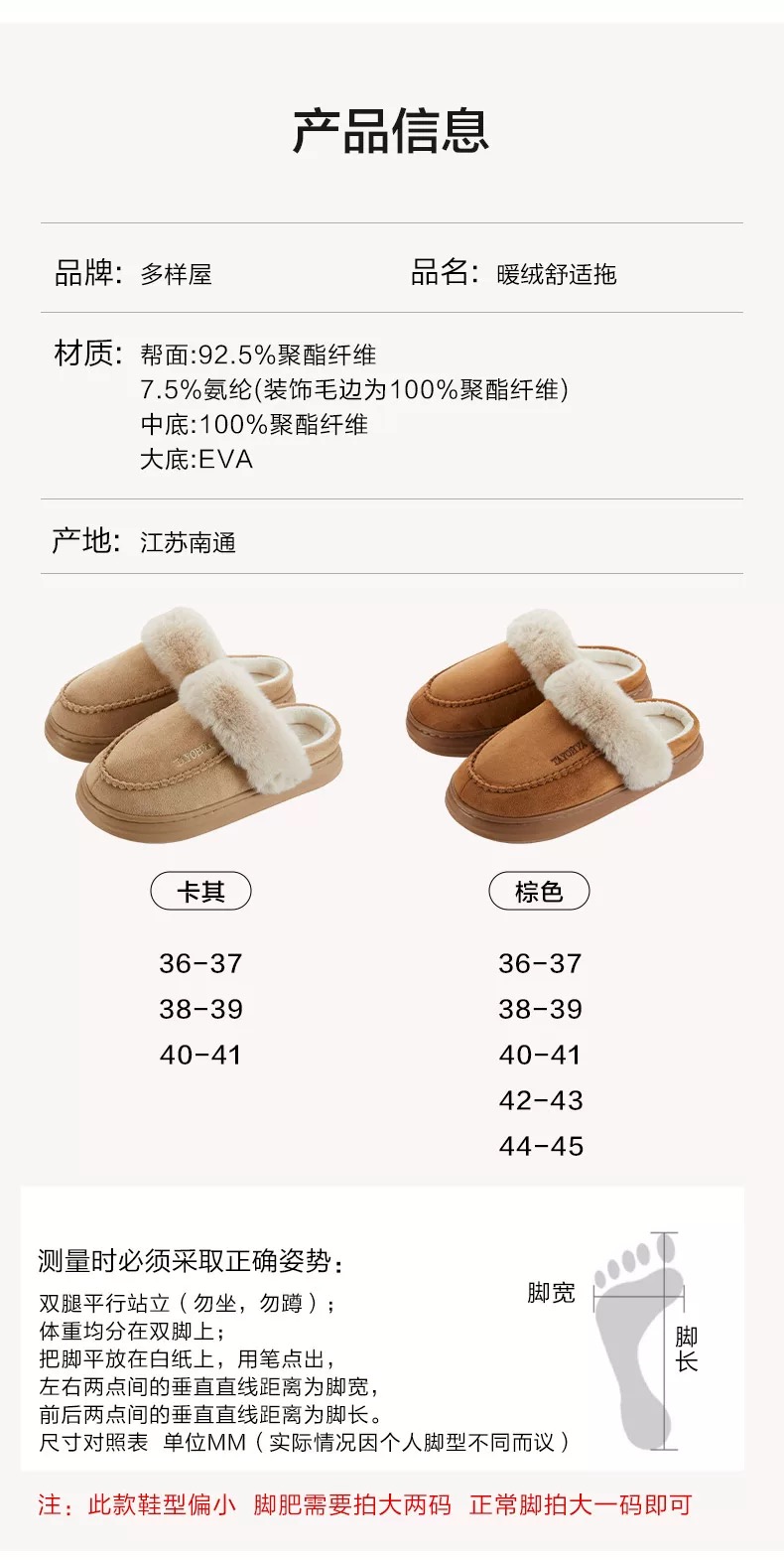 【6F】TAYOHYA多样屋暖绒舒适拖厚底柔软棉拖鞋毛绒室内冬季外穿保暖(鞋码偏小,脚胖拍大两码)