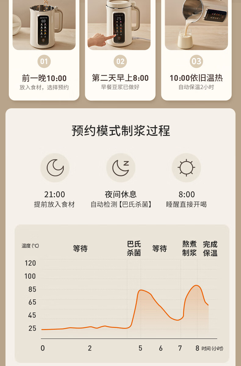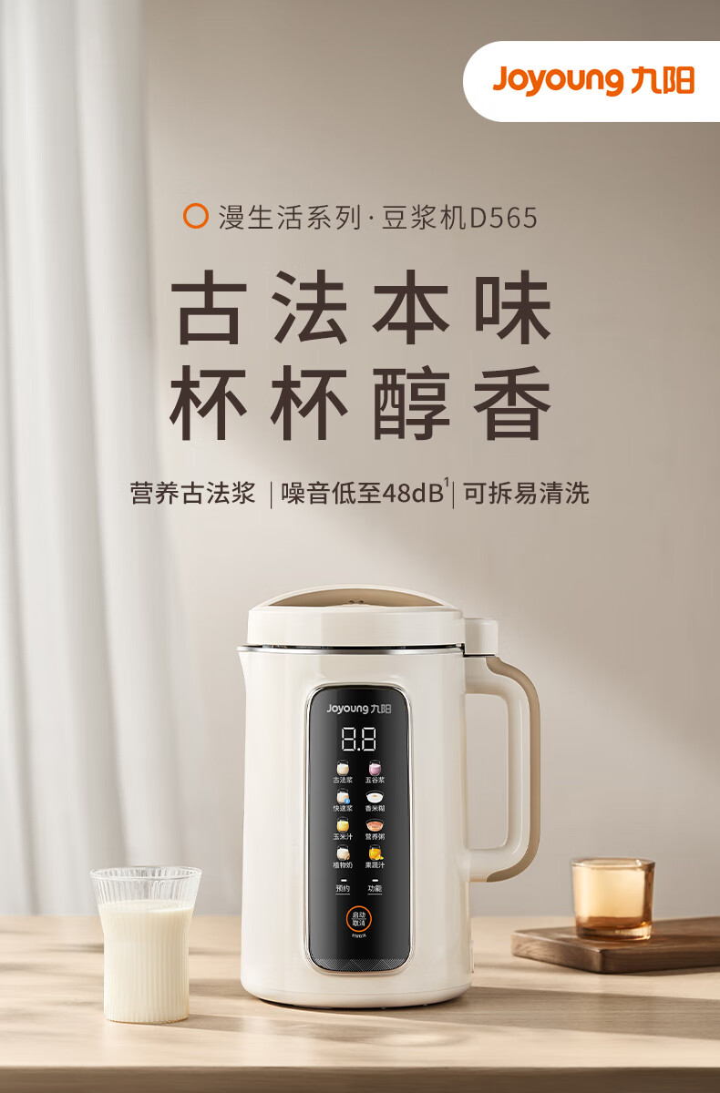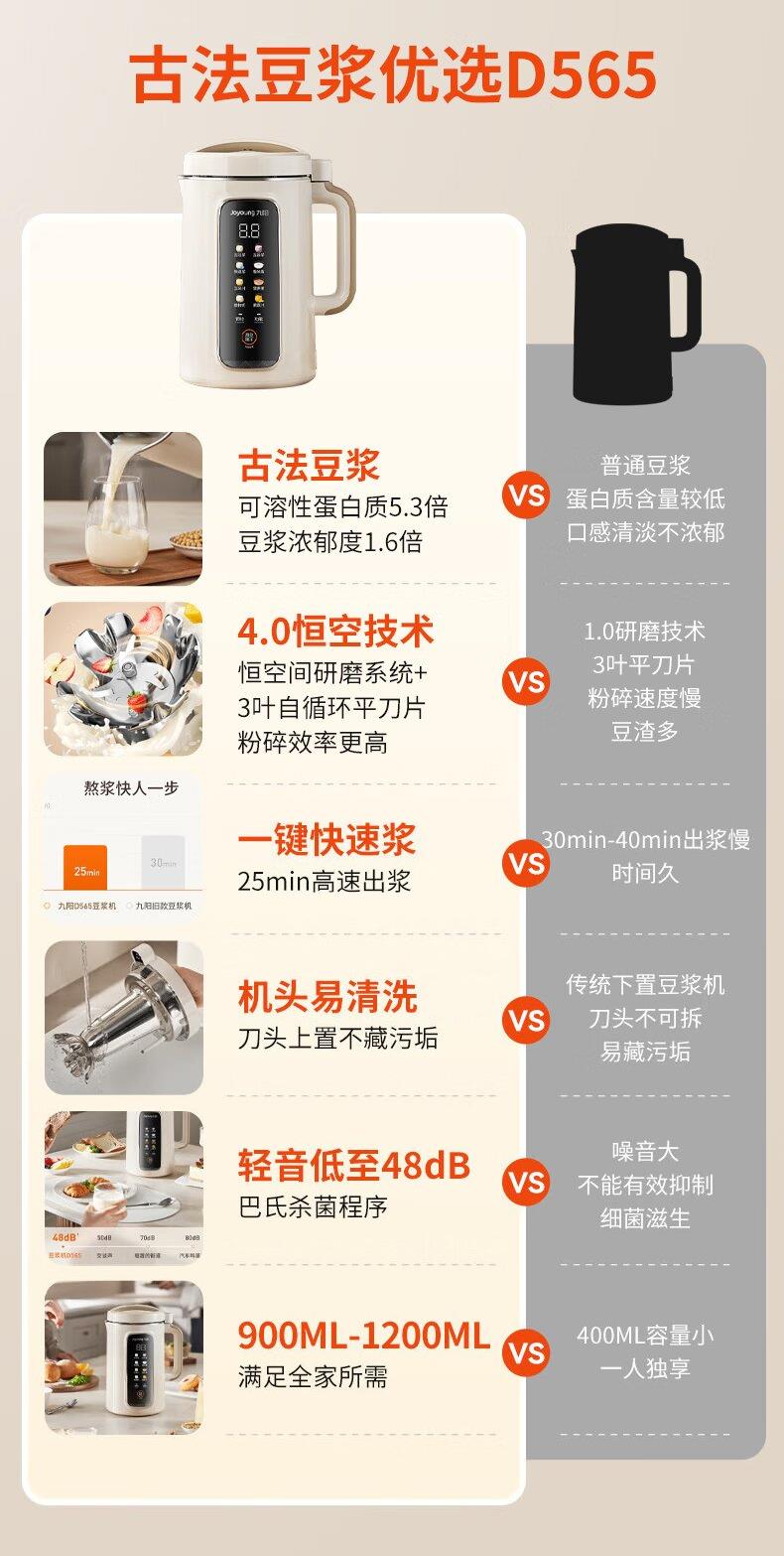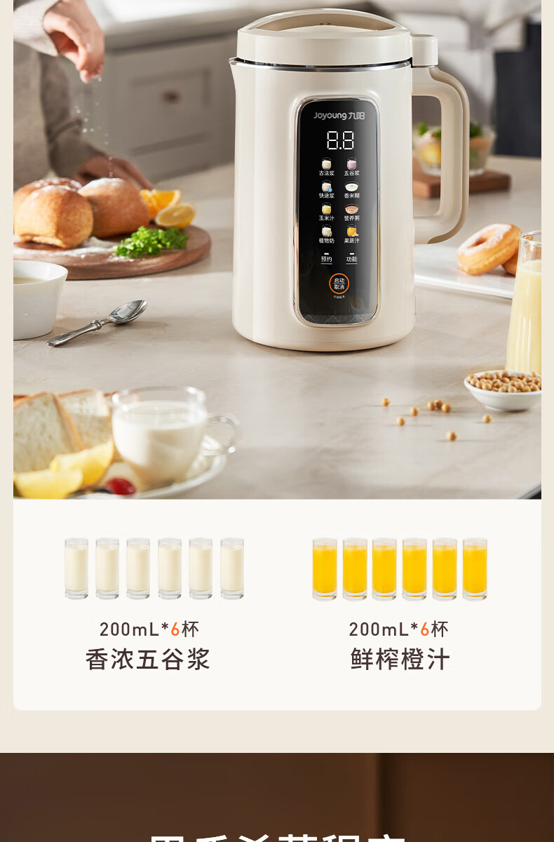 九阳豆浆机1.2L古法免煮免过滤轻音破壁机家用榨汁智能预约多功能