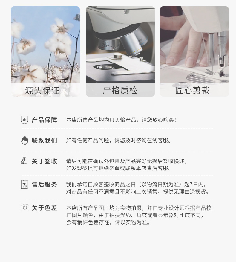- 贝贝怡专注0-6岁婴幼儿服饰,坚持安全、柔软、舒适的产品理念,为千万中国家庭提供超高品质、安全可靠的婴幼儿服饰产品,妈妈放心,宝宝开心!