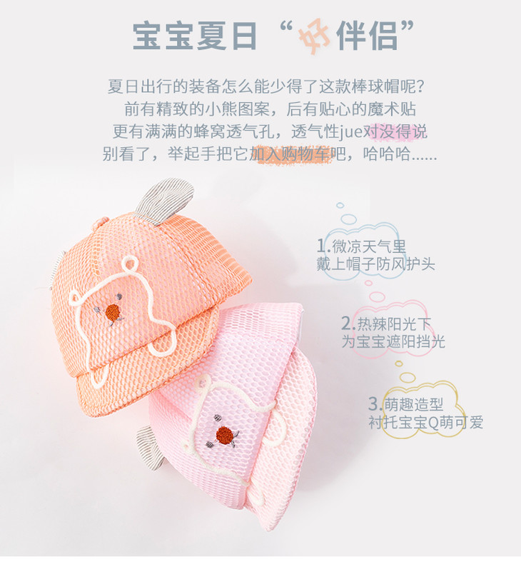 贝贝怡女童外出遮阳帽夏季新款宝宝鸭舌帽透气宝宝帽子棒球帽202P2251