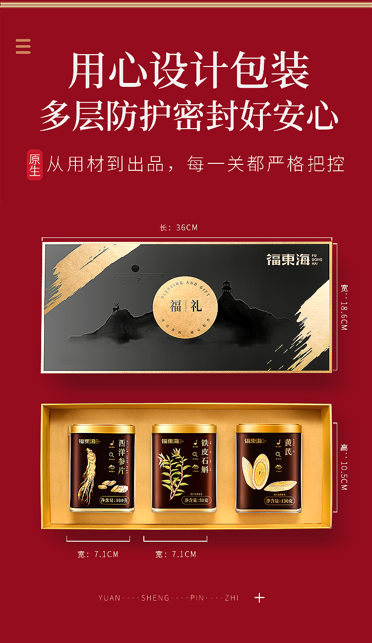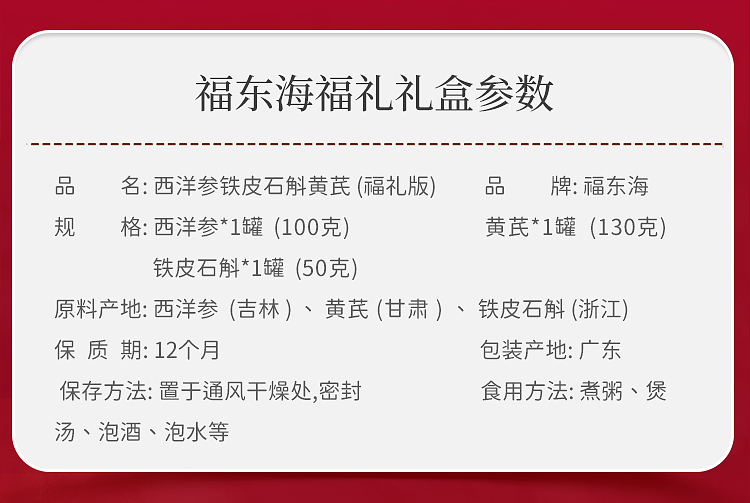 福东海 精选西洋参铁皮石斛黄芪组合280克