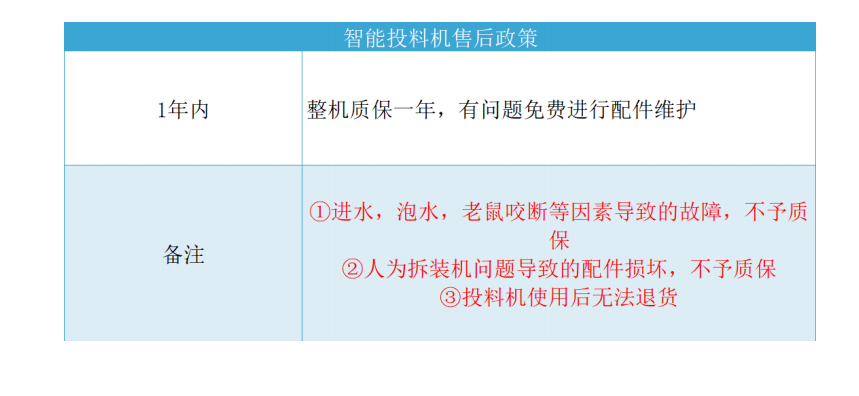 1、高速机最大投料距离:17米,电机转速:2945RPM,功率:150w,投料角度:142° 低速机最大投料距离:12米,电机转速:1445RPM,功率:150w,投料角度:110° 2、投料时间可调:1-16秒3、投料间隔可调:1-16秒 4、无料自动停机、缺料提醒功能; 5、卡料自动停机保护并电话告警; 6、养殖不同阶段,投料量提醒功能; 7、精准计重,自动校准; 8、可根据时长/重量设置定时定量投料,最多支持10组; 9、手机远程开关; 10、实时显示投料进度,自动记录投料数据; 11、关联变焦摄像头,实时查看投料情况 |