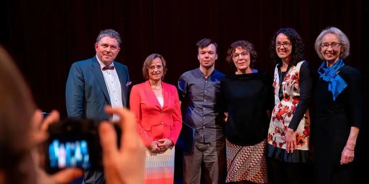 ▲图为Katrin Brack接受海因·赫克罗斯(Hein Heckroth)舞台设计奖合影。(左四为Katrin Brack)