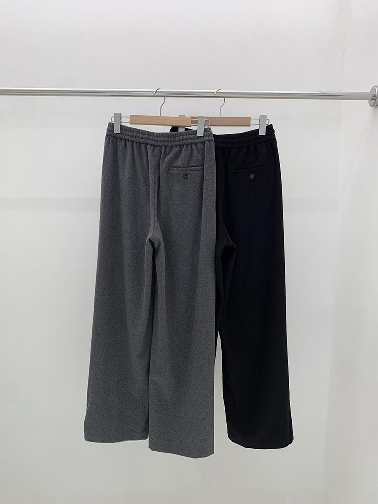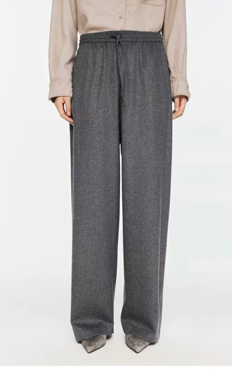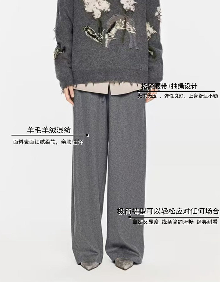 松弛感通勤懒人羊毛呢休闲直筒裤 羊毛羊绒混纺 手感柔软饱满 筋骨感好 微磨绒呢感工艺处理 极简裤型 自然又显瘦