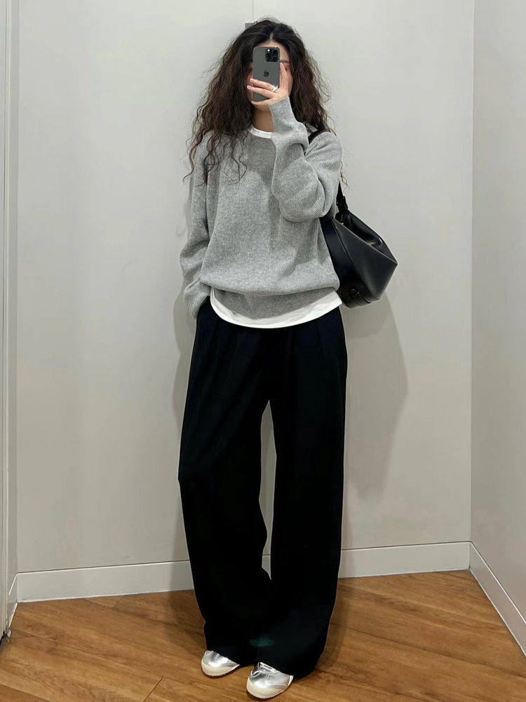 松弛感通勤懒人羊毛呢休闲直筒裤,“漫不经心的时髦” 有点小分量,无论是舒适度,质感,垂感还是颜值,都是一条值得你入手的神裤。