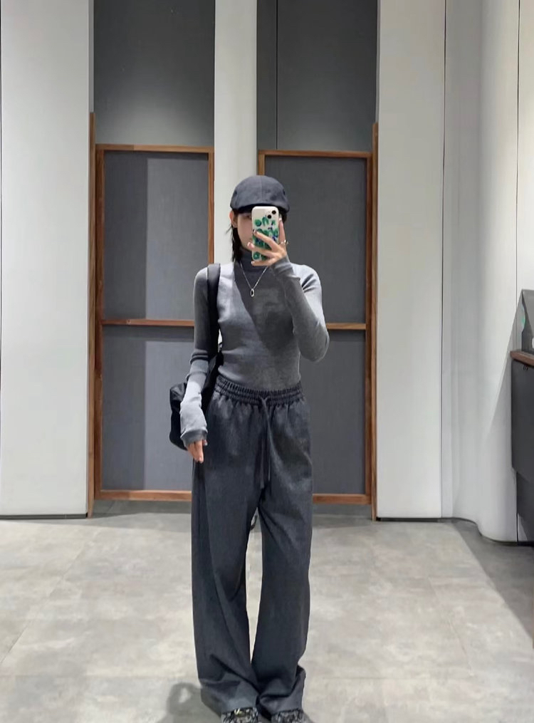 含羊绒成分的休闲直筒裤 率性洒脱,尽显高级腔调,量感裤型,精心设计的裤长,率性利落,宽松版型能够适配任意腿型,兼具立体感与包容度,打造恣意慵懒感,气场与时髦并存!!