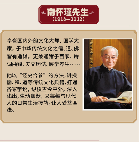 南怀瑾先生(1918—2012)是享誉国内外的文化大师、国学大家,出身于温州书香门第,自幼饱读诗书,遍览经史子集,对国学钻研精深,体认深刻,于中华传统文化之儒、道、佛皆有造诣,更兼通诸子百家、诗词曲赋、天文历法、医学养生等等,对西方文化亦有深刻体认,在中西文化界均为人敬重。自青年时代立下弘扬中国传统文化的志向后,南怀瑾先生讲学六十余年不辍。他以“经史合参”的方法,讲授儒、释、道等传统文化典籍,讲解不受教派、门户的限制,打通各家学说,纵横古今中外,深入浅出,生动幽默,又每每与现代人的日常生活接轨,让人受益匪浅,深受海内外各界各层次读者的喜爱。