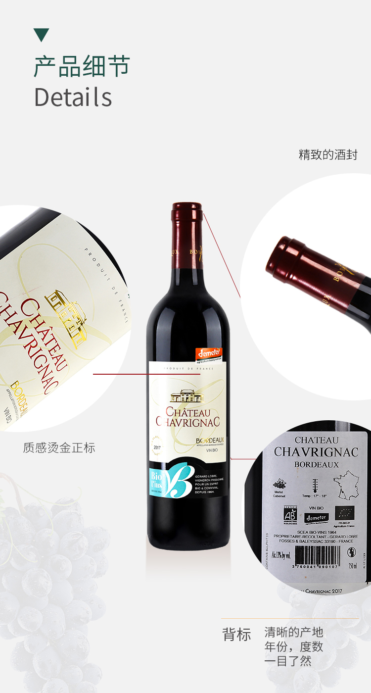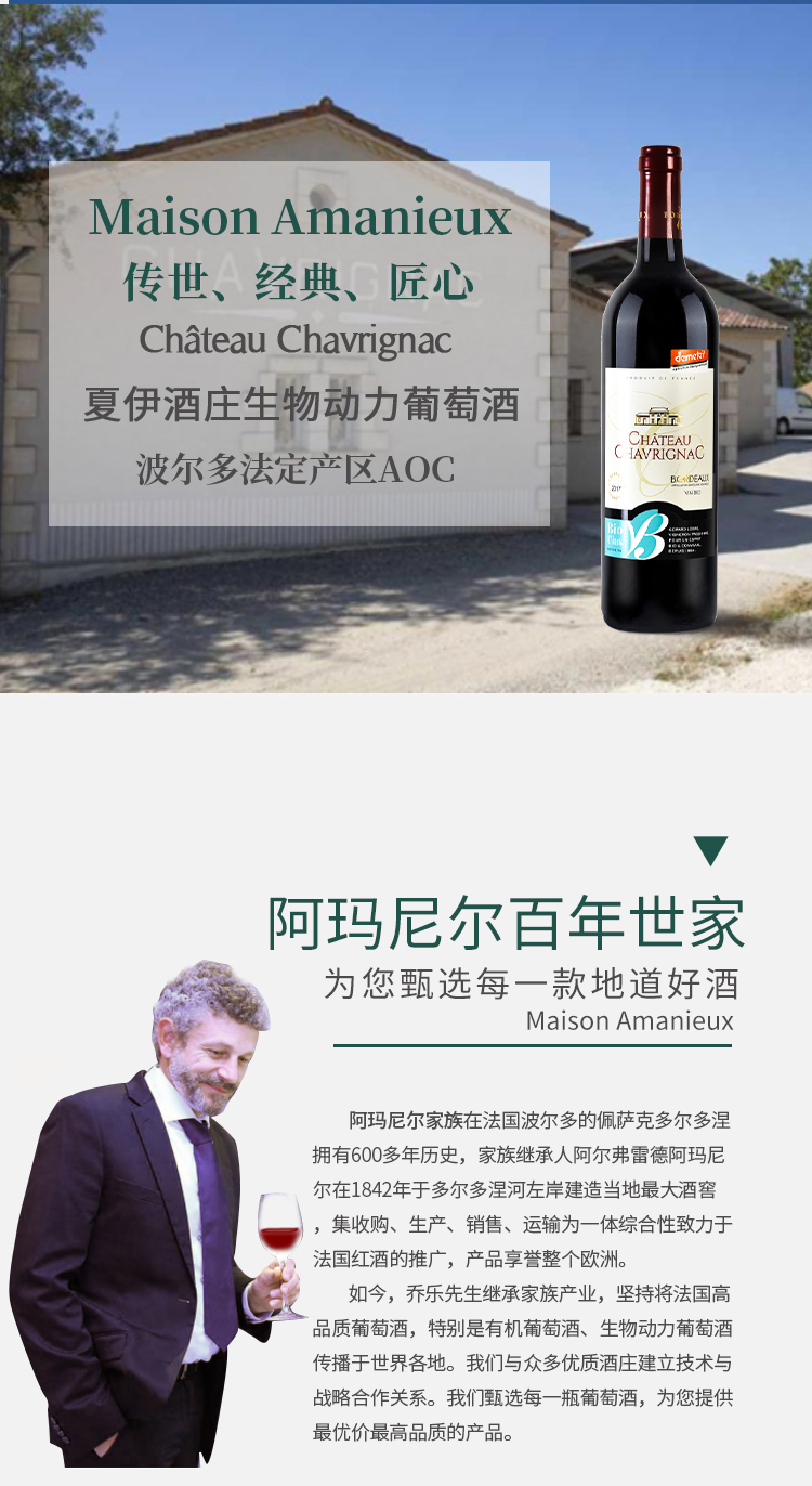 【有机干红】阿玛尼尔甄选金奖波尔多AOC级,山松城堡自然马戏团,100%梅洛