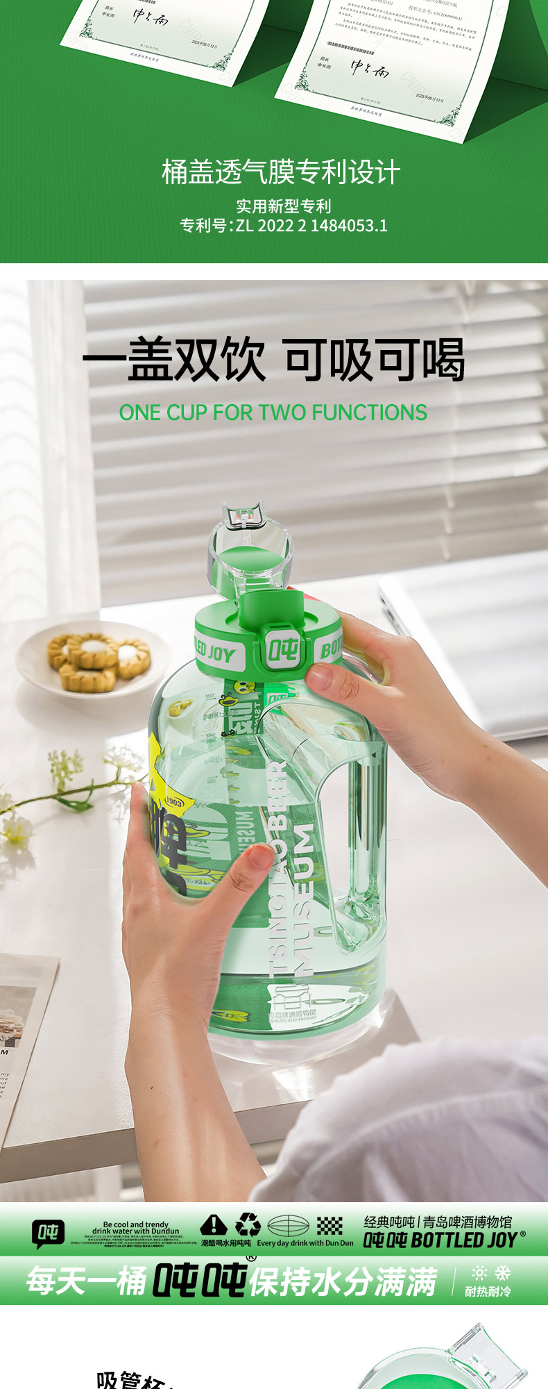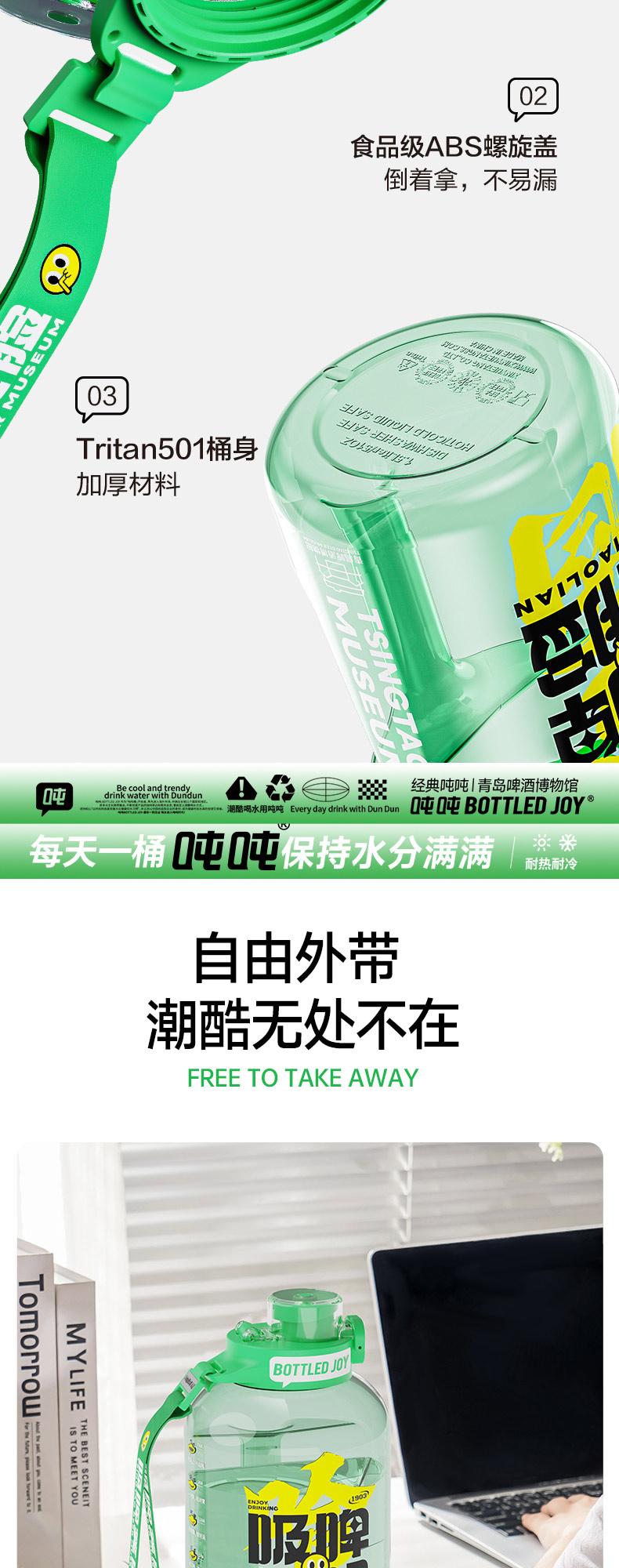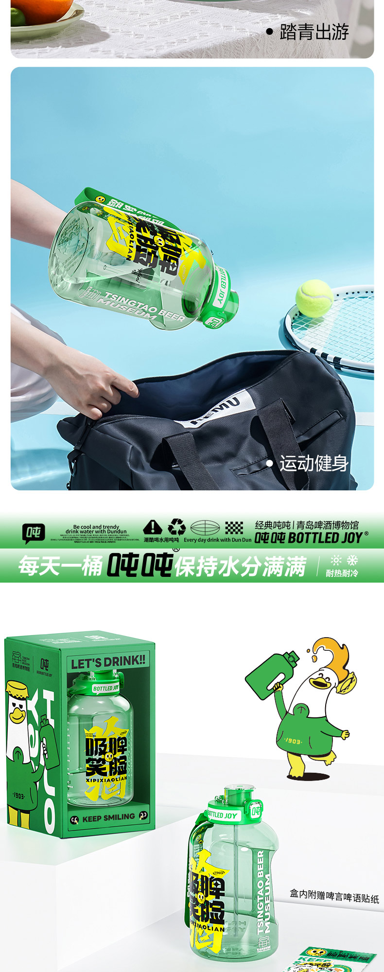 【青岛啤酒博物馆】吨吨桶 吸啤笑脸1.5L绿色 青岛啤酒 官方文创