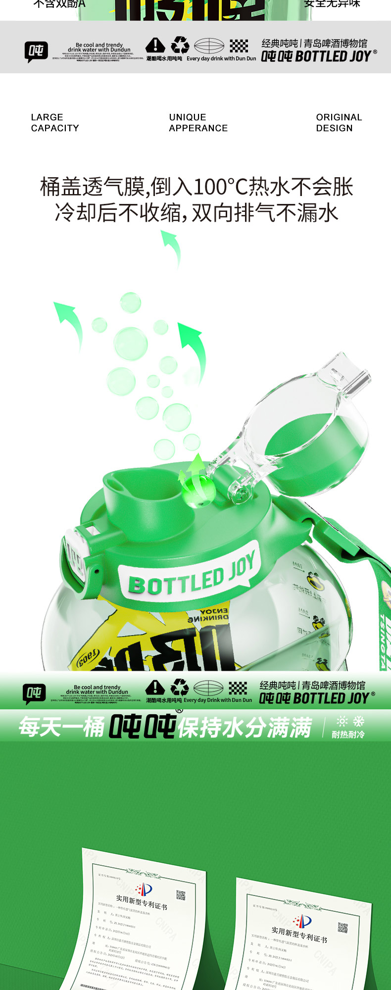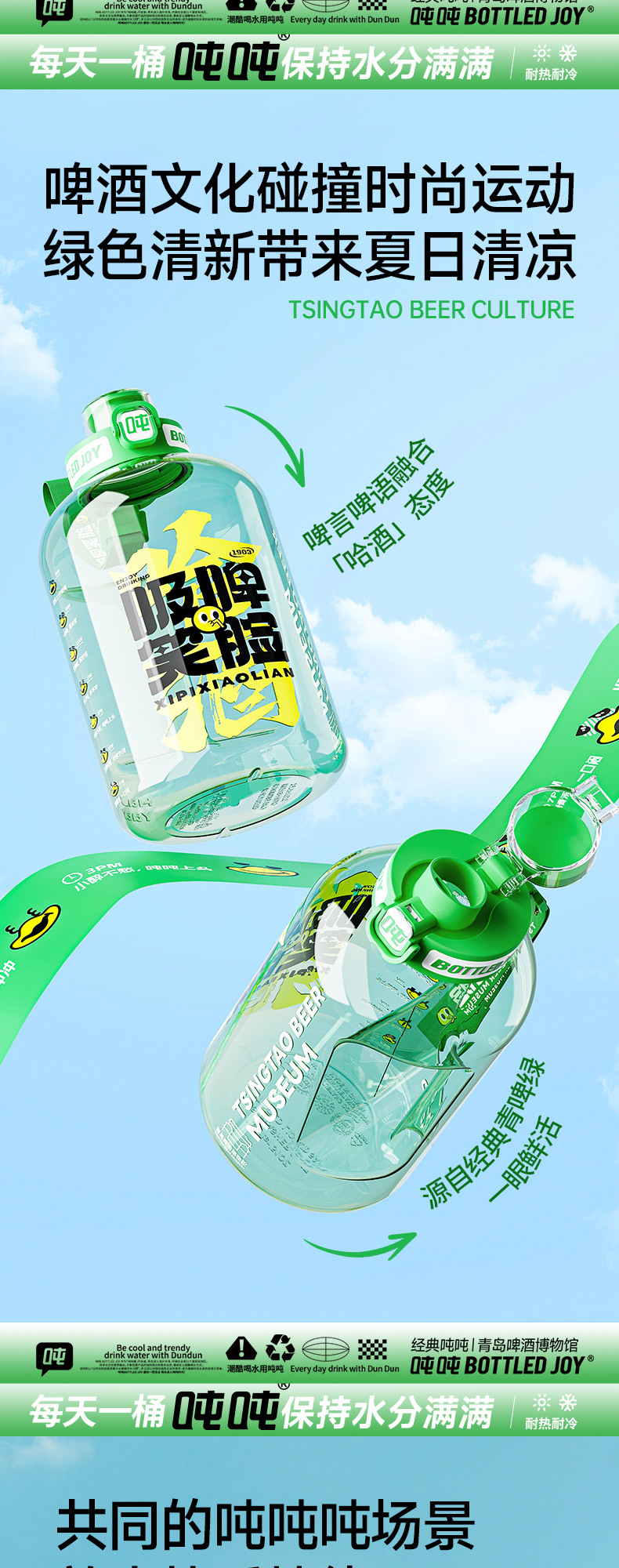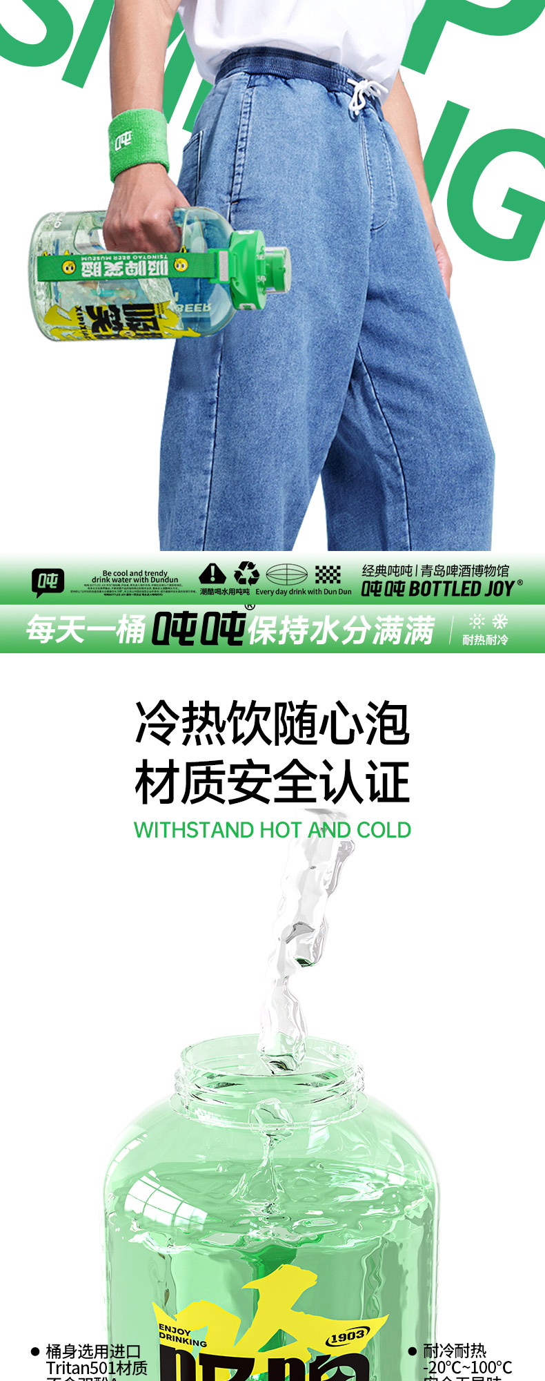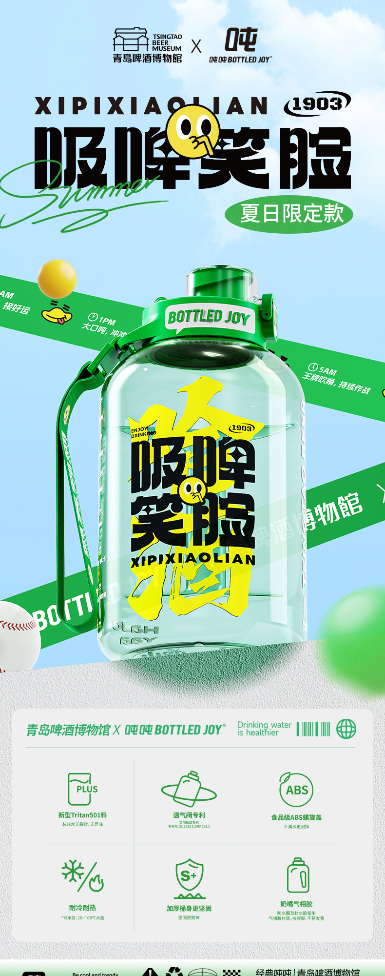 【青岛啤酒博物馆】吨吨桶 吸啤笑脸1.5L绿色 青岛啤酒 官方文创