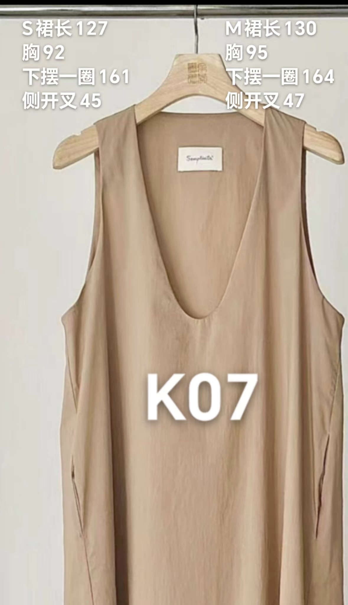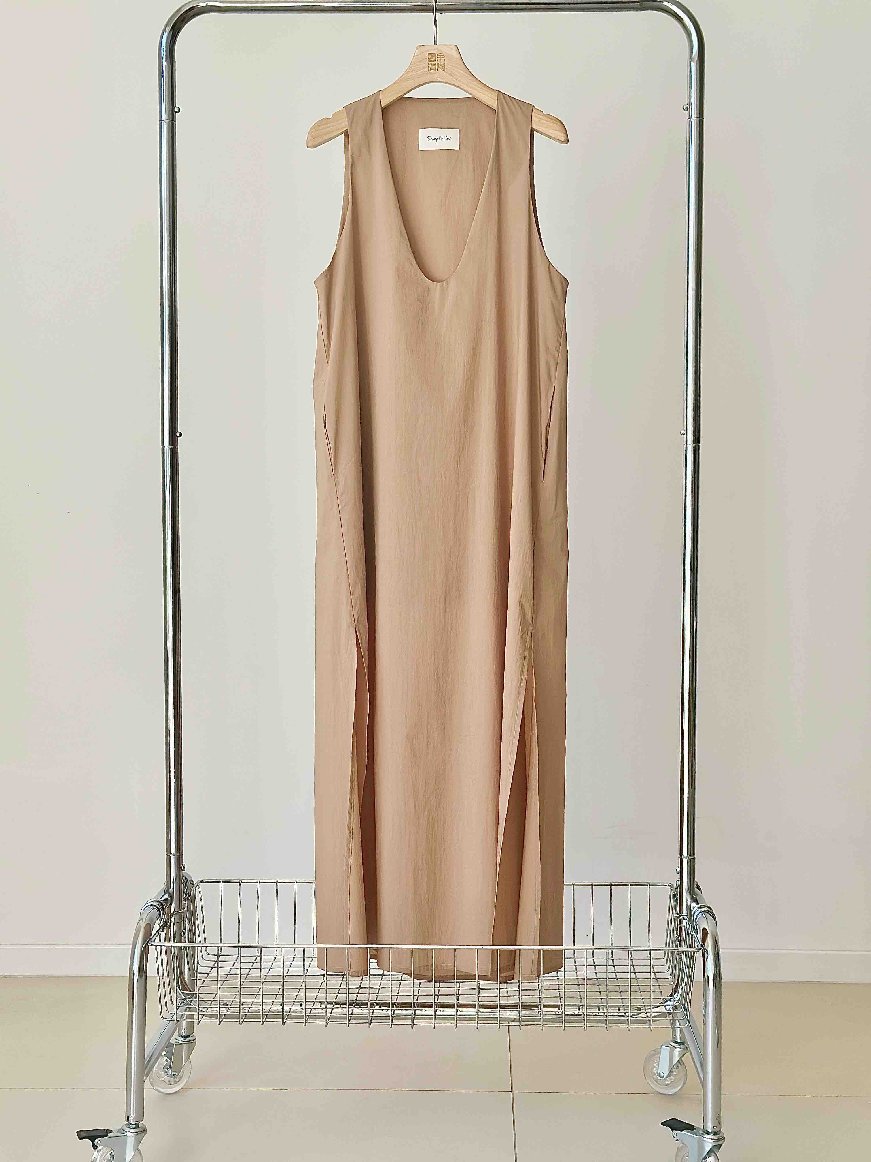 Semplicita | K07 深U领无袖开衩连衣裙 [ 驼 ]