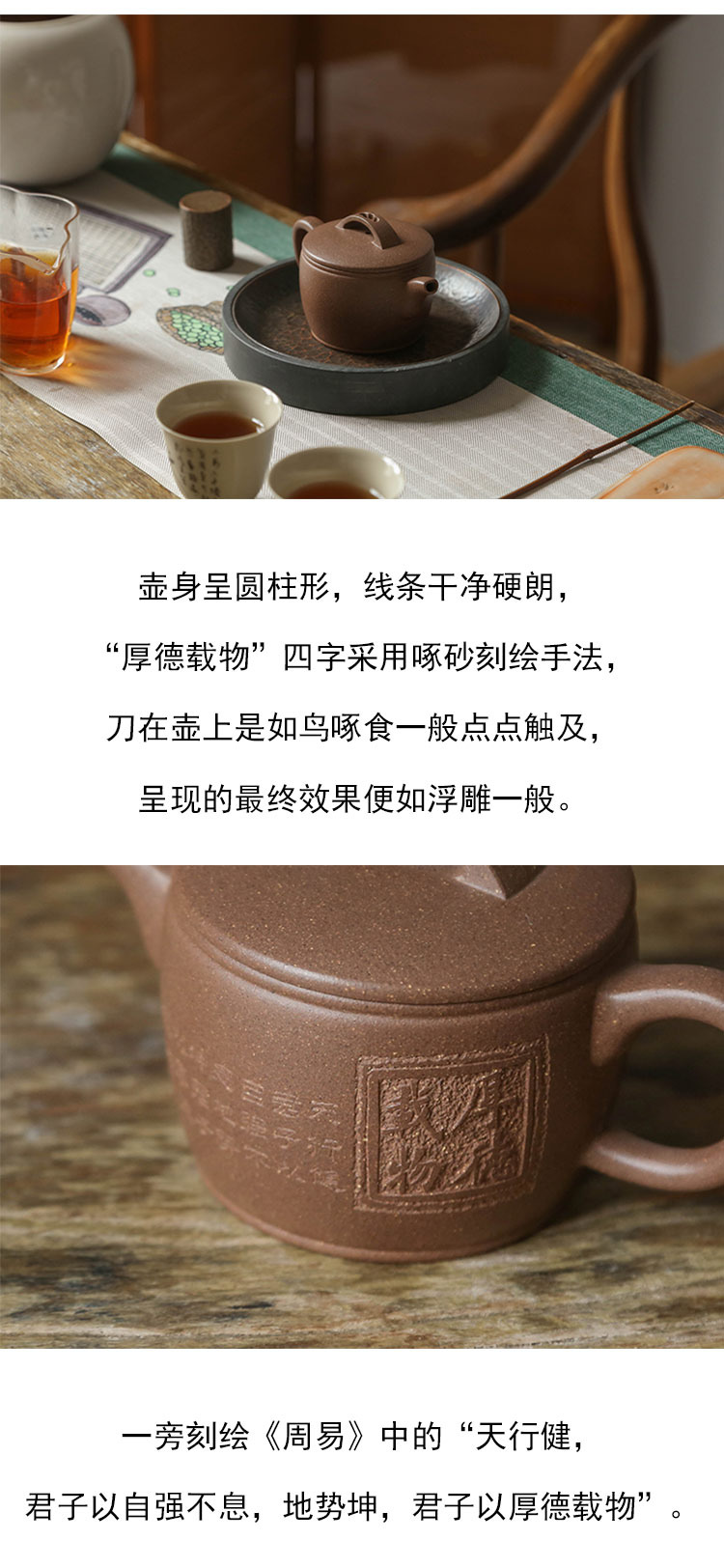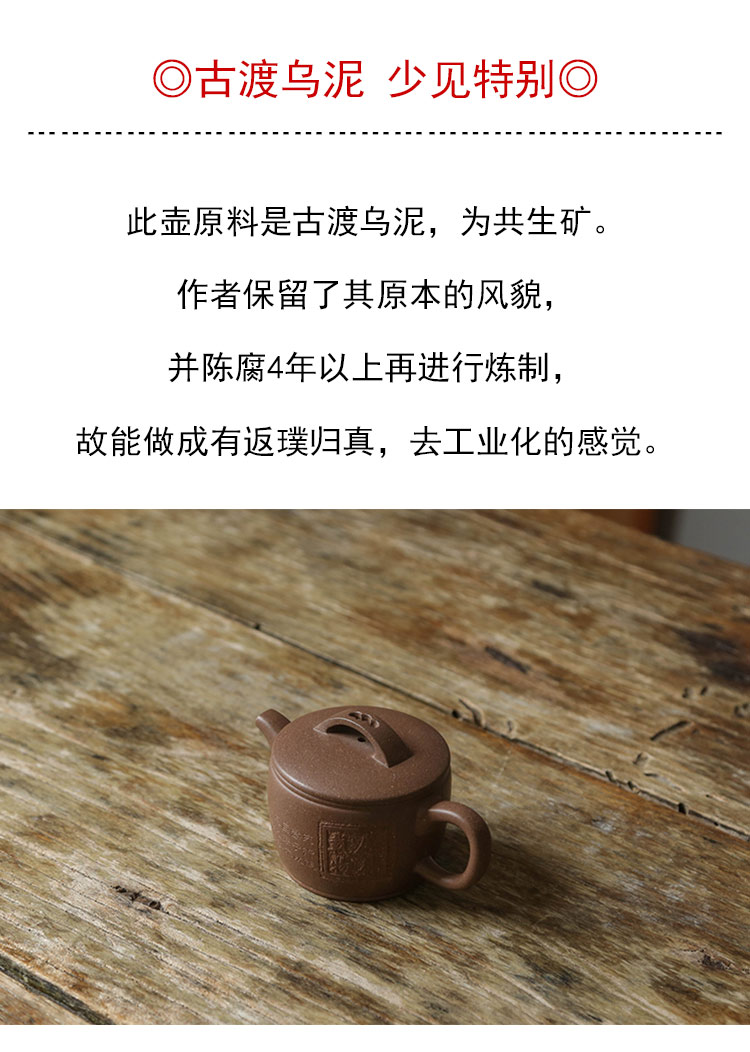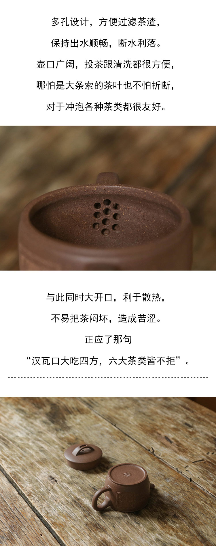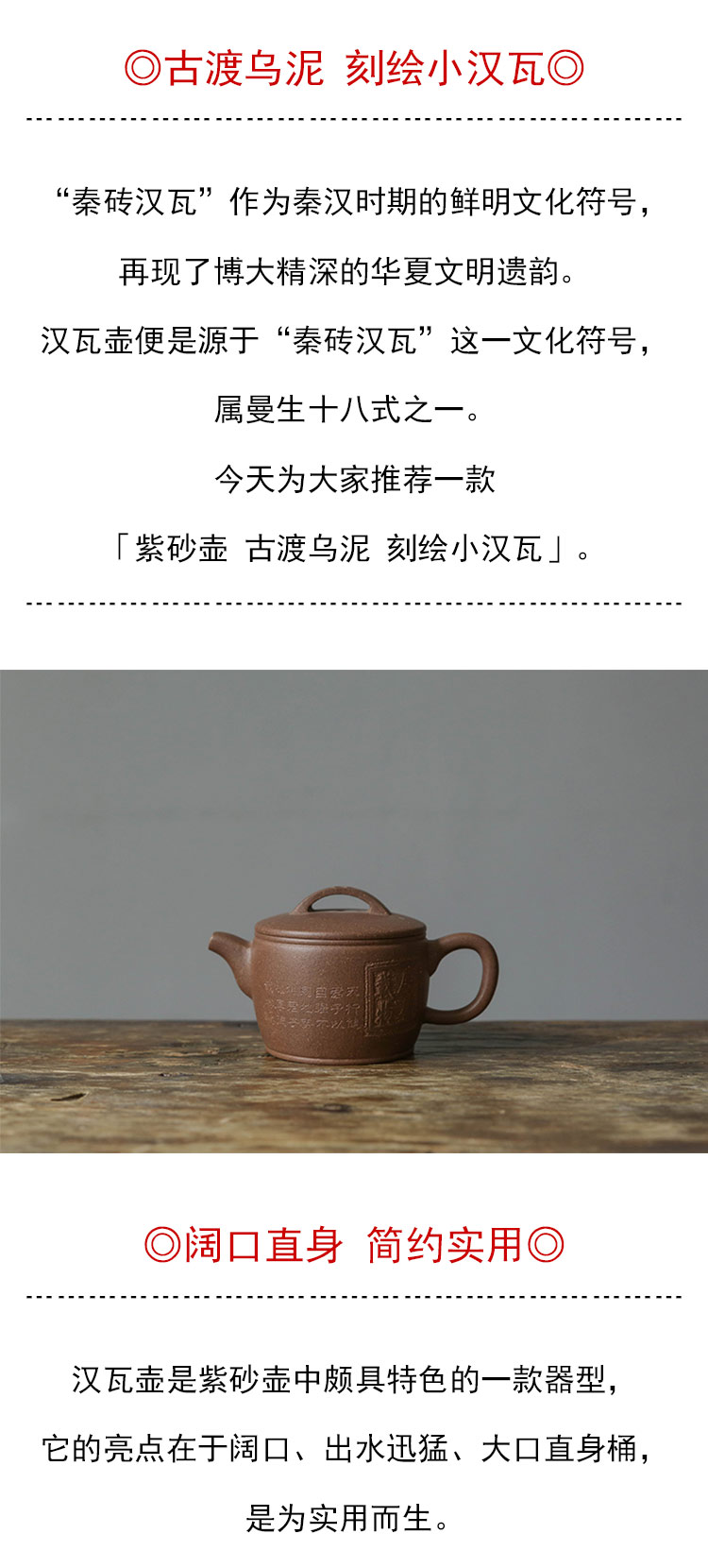 茶香记 紫砂壶 古渡乌泥 刻绘小汉瓦 阔口直身 简约实用 拙朴耐看