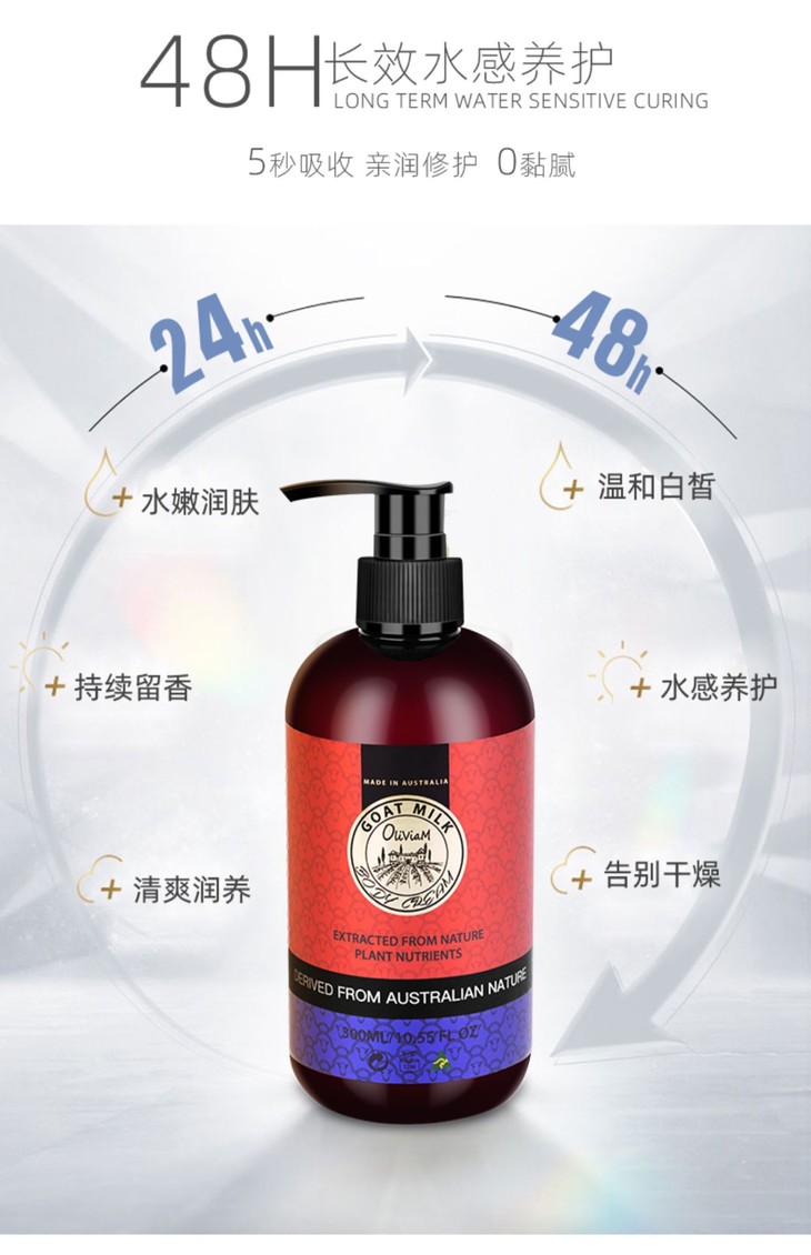 300ML澳莉维亚山羊奶水感身体养护乳 滋润保湿嫩肤不油腻