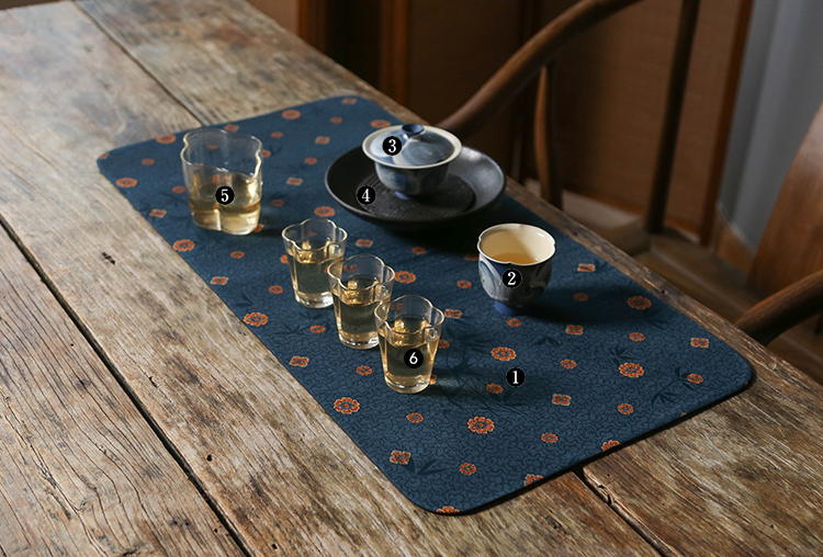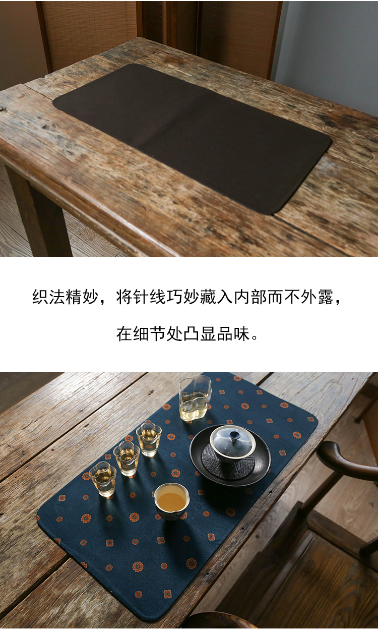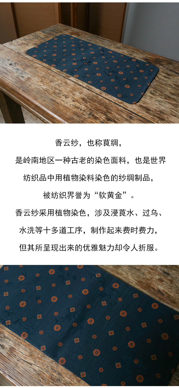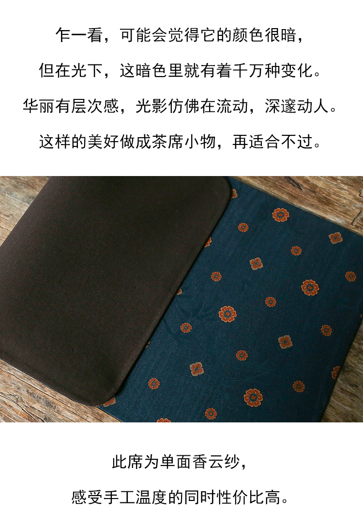 茶香记 单面香云纱蓝宝相茶席布宝相花一人席复古撞色百搭质感十足