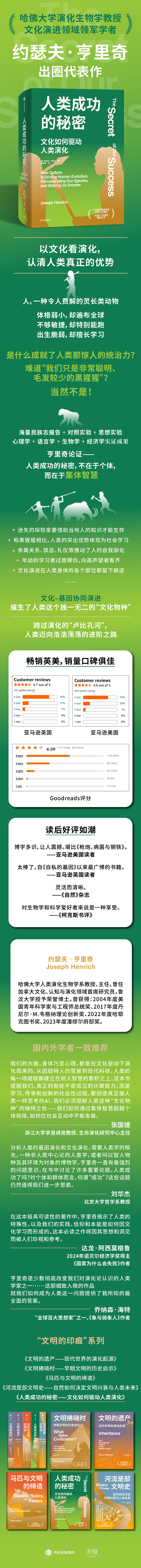 分析人类的基因演化和文化演化,需要人类学的眼光,一种非人类中心论的人类学,或者叫以智人物种及其环境为对象的博物学。亨里奇一直有着强烈的问题意识,在书中讨论了许多重要论题。人类成功了吗?对个体和群体而言,何谓“成功”?这些话题仍然值得我们进一步思索。