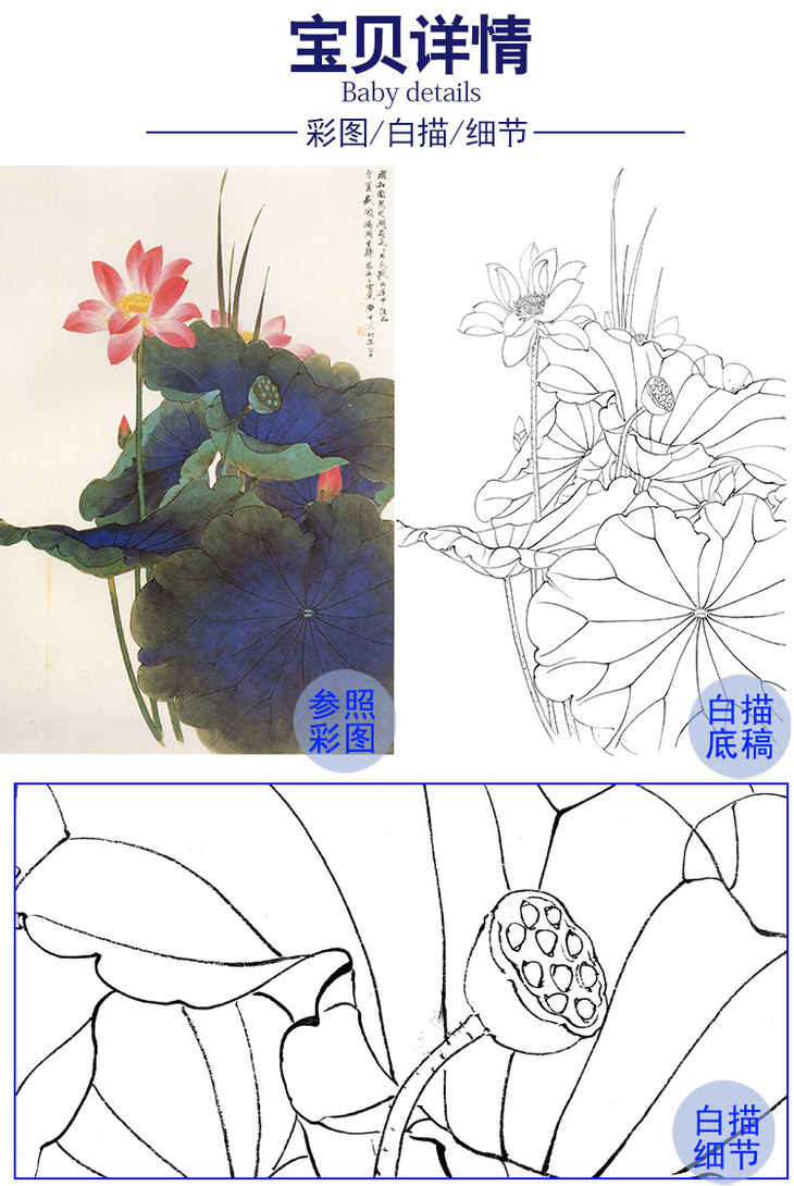 田世光工笔竖幅花鸟白描底稿-《颐和园盛夏图》-多种白描尺寸可选-SG08