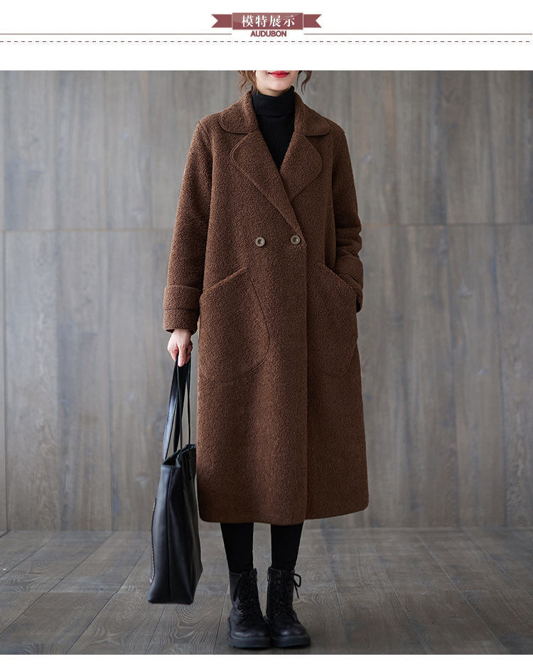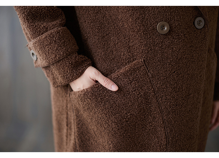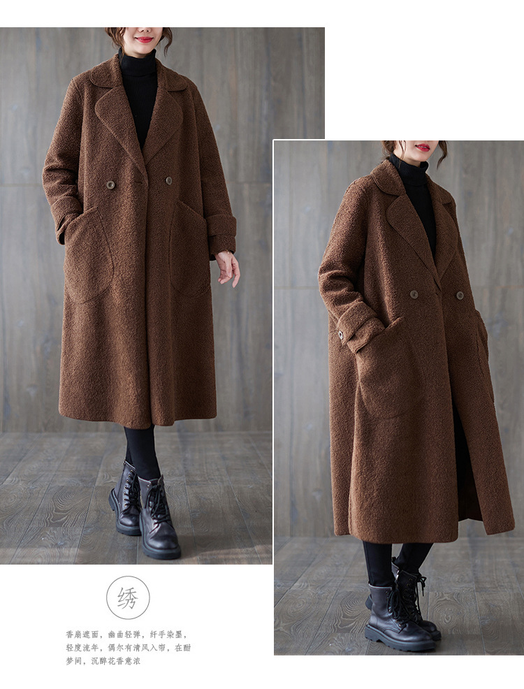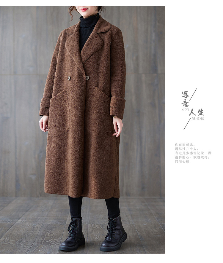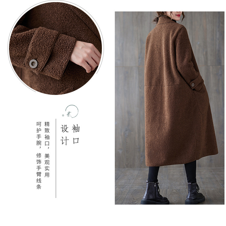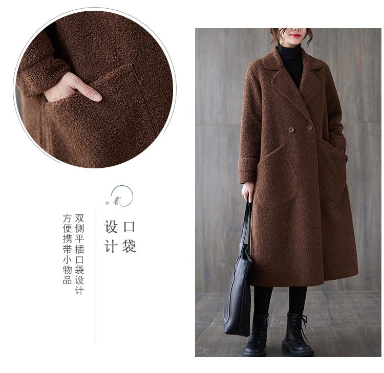 SJ9110 2023冬季新款复古文艺仿羊羔毛皮毛一体中长款颗粒绒加厚大衣外套