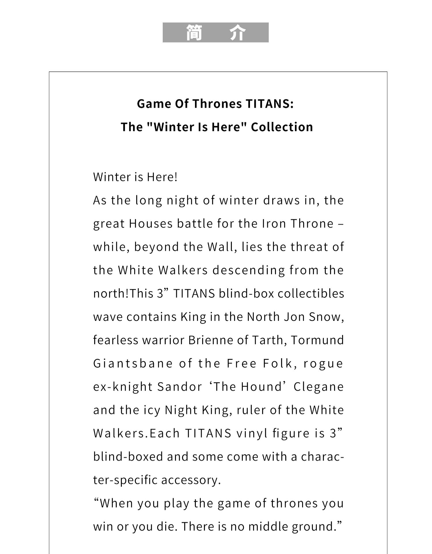 现货Titans Game of Thrones冰与火之歌权力的游戏盲盒