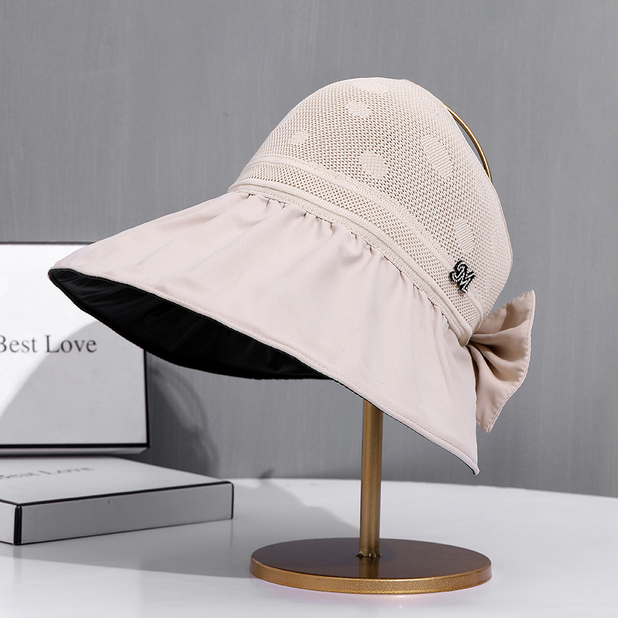 CT-M1883夏季新款空顶帽黑胶涂层透气遮阳帽拼接蝴蝶结大沿太阳帽子女