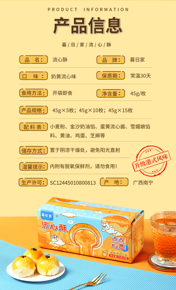 【9.9小食】香酥软糯 自然流心 | 暮日家流心酥 现做现发 30天保质期 早餐点心下午茶零食 45克/枚 5枚/份 [2份起默认合并为10枚/箱或15枚/箱发货]