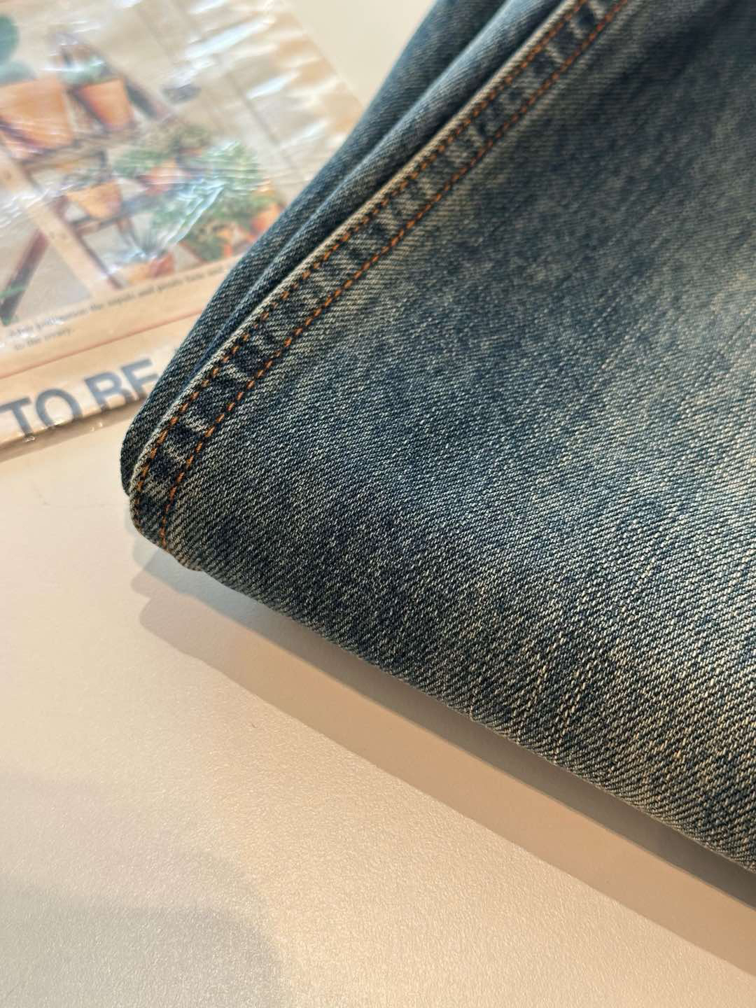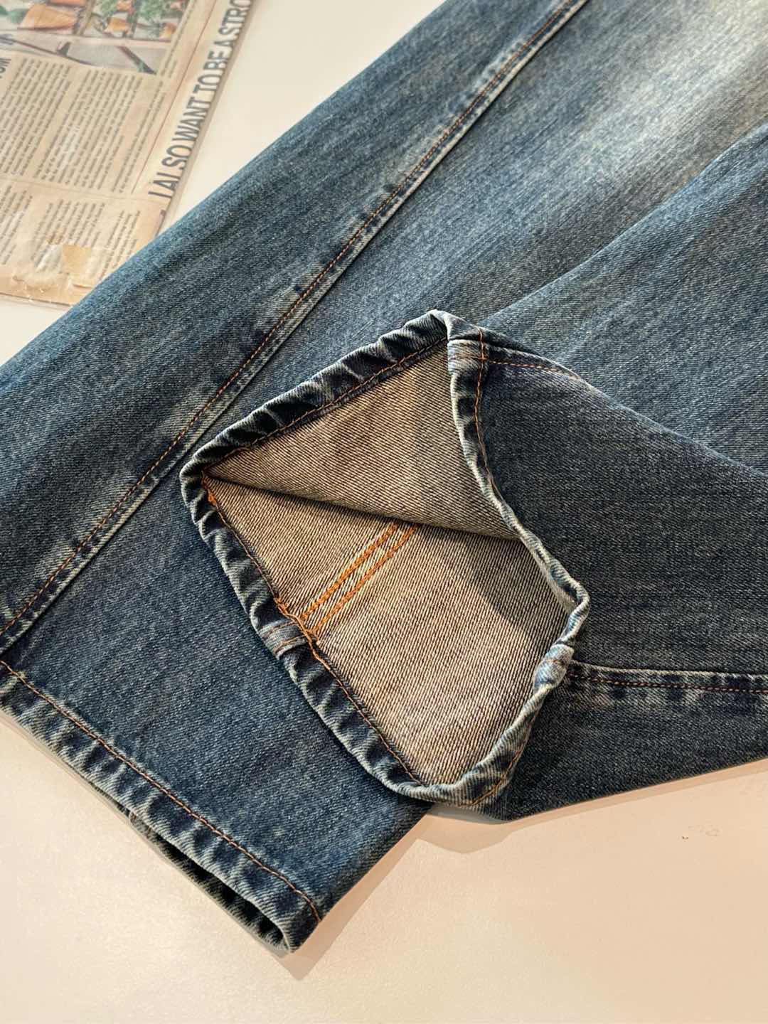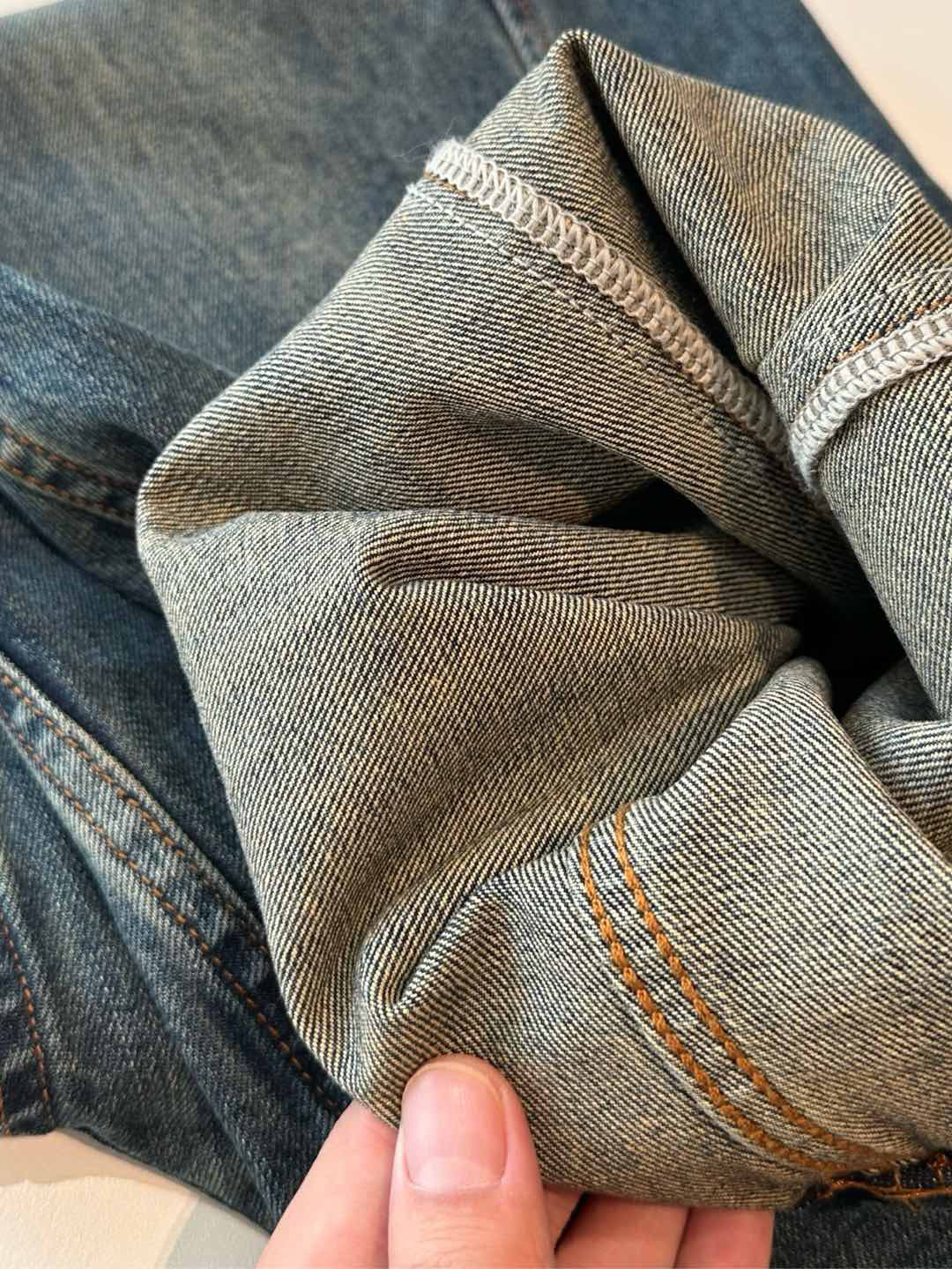 随便对比柜子上千的牛仔裤!!优质牛仔裤内里车线均匀、细密、牢固,针距一致,无跳线、漏线、重线等问题,在裤缝、口袋边缘等部位的车线平整顺滑,增强裤子的耐用性和舒适性。