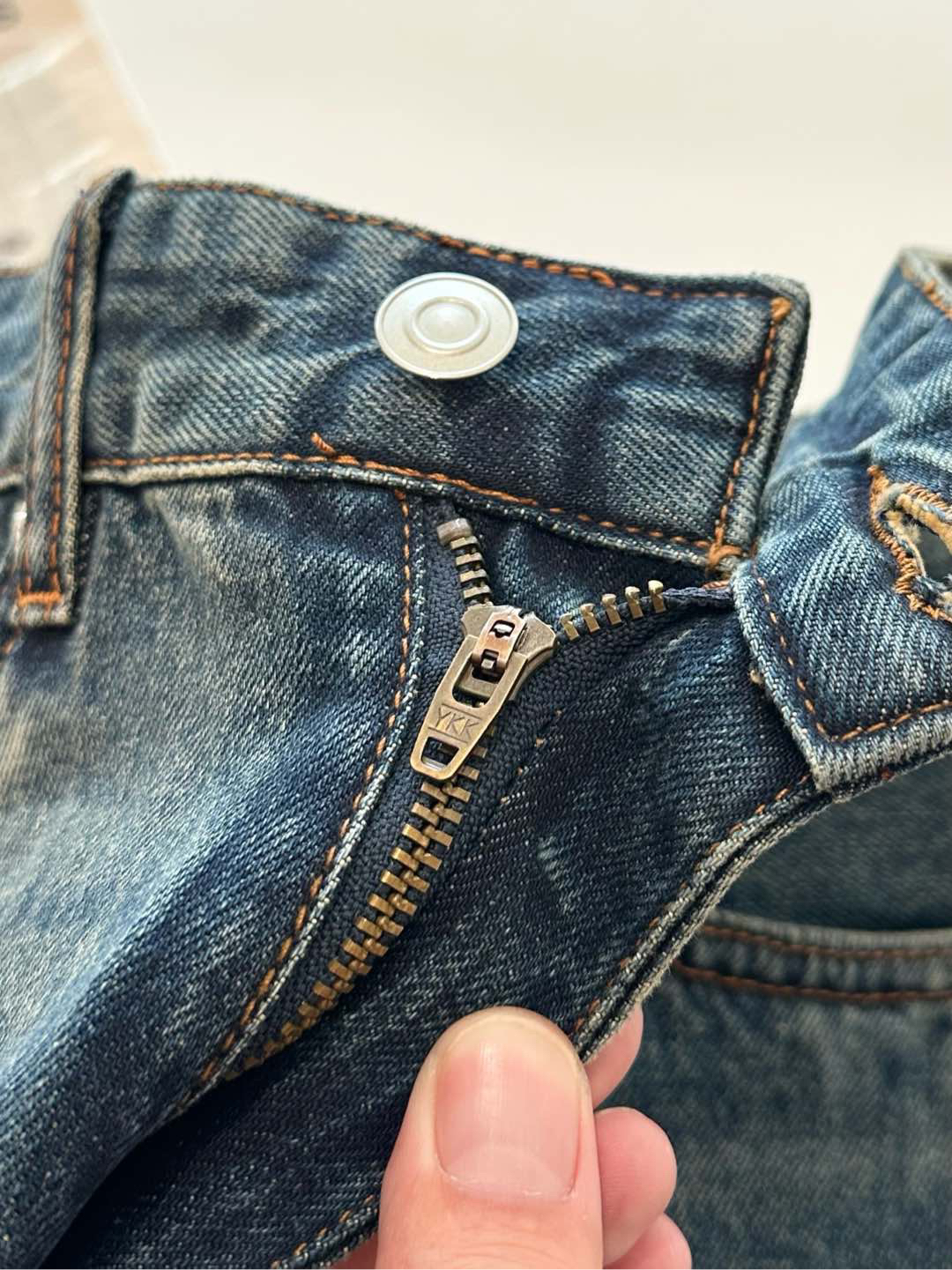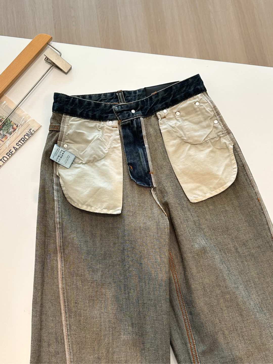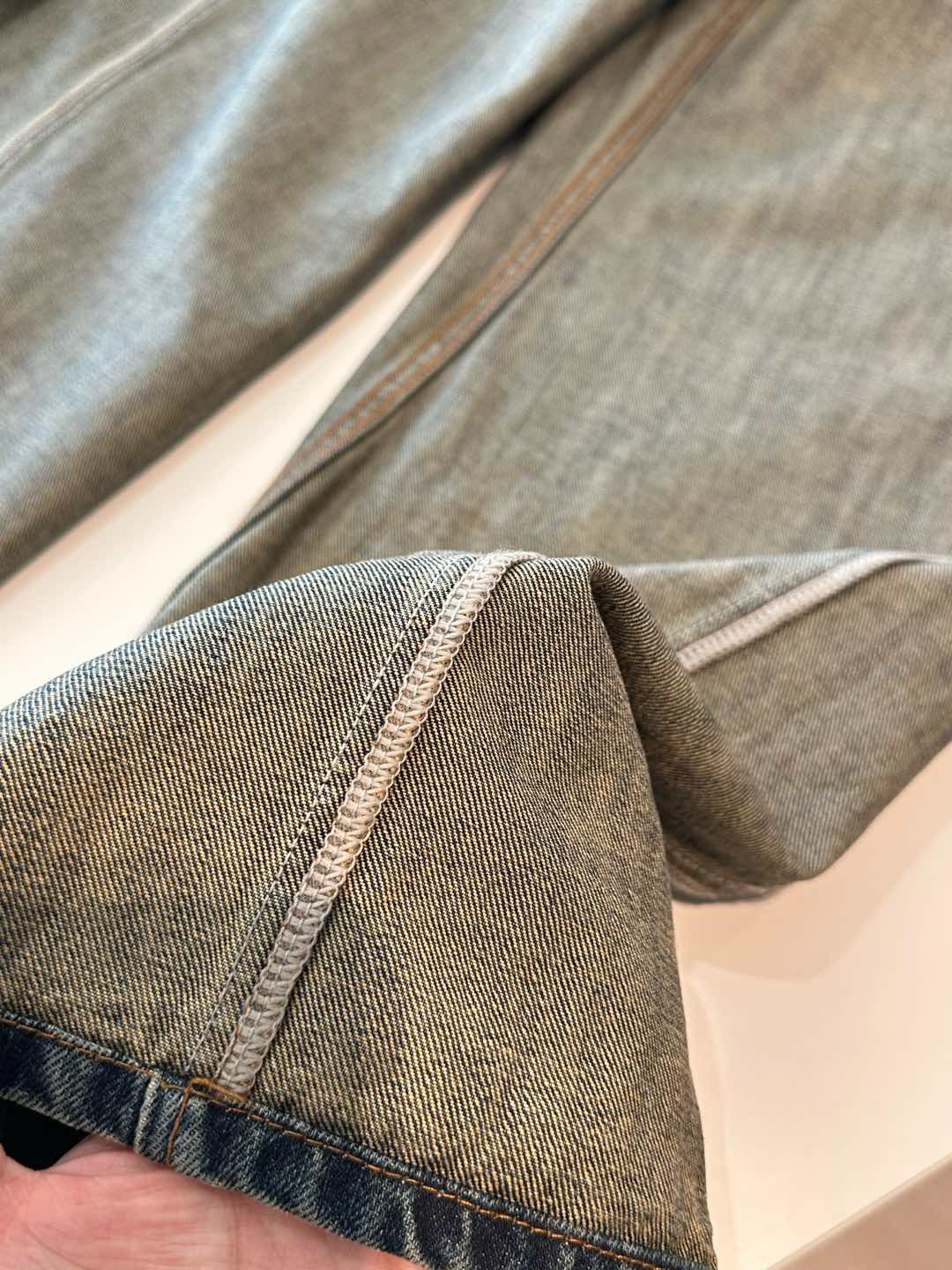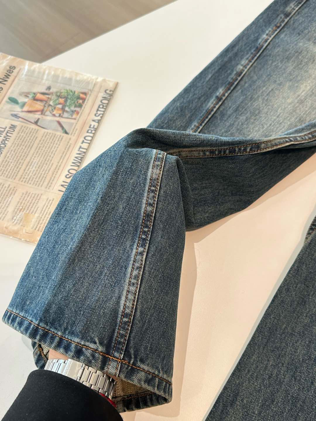 随便对比柜子上千的牛仔裤!!优质牛仔裤内里车线均匀、细密、牢固,针距一致,无跳线、漏线、重线等问题,在裤缝、口袋边缘等部位的车线平整顺滑,增强裤子的耐用性和舒适性。