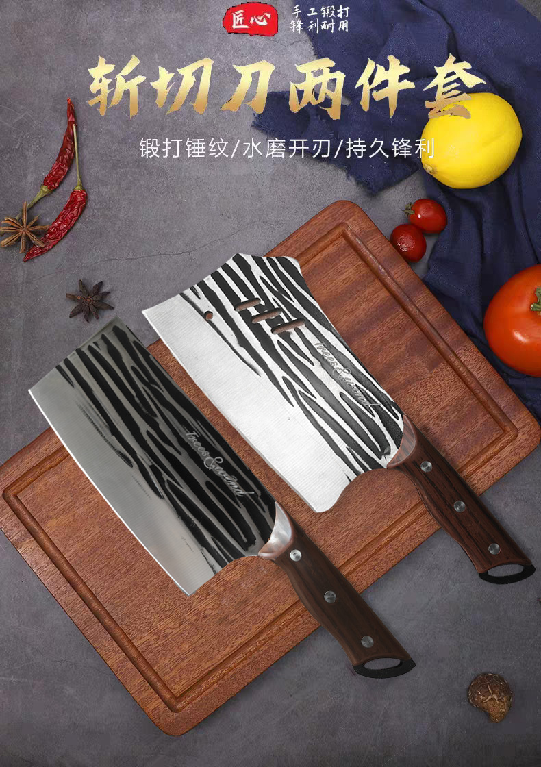 两刀在手🔪切菜砍骨统统不愁【Trees&wind锻打防木菜刀两件套T101)】锋利耐磨,省时省力,下厨效率翻