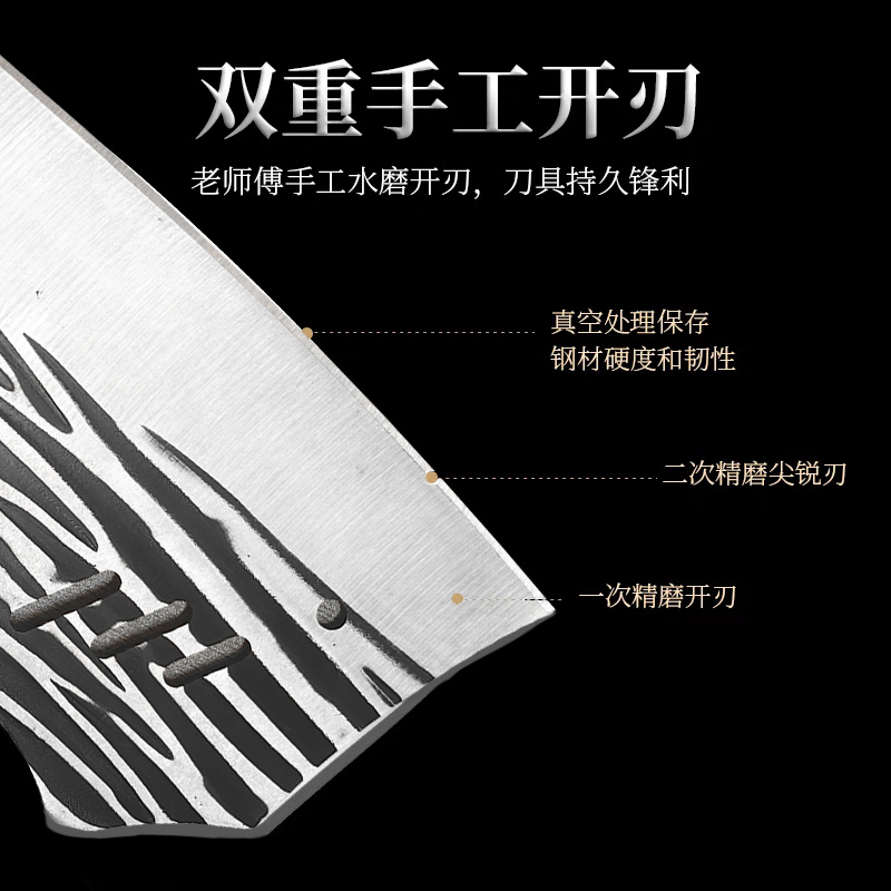 ✅V形15°/45°开刃,利落砍骨不粘肉