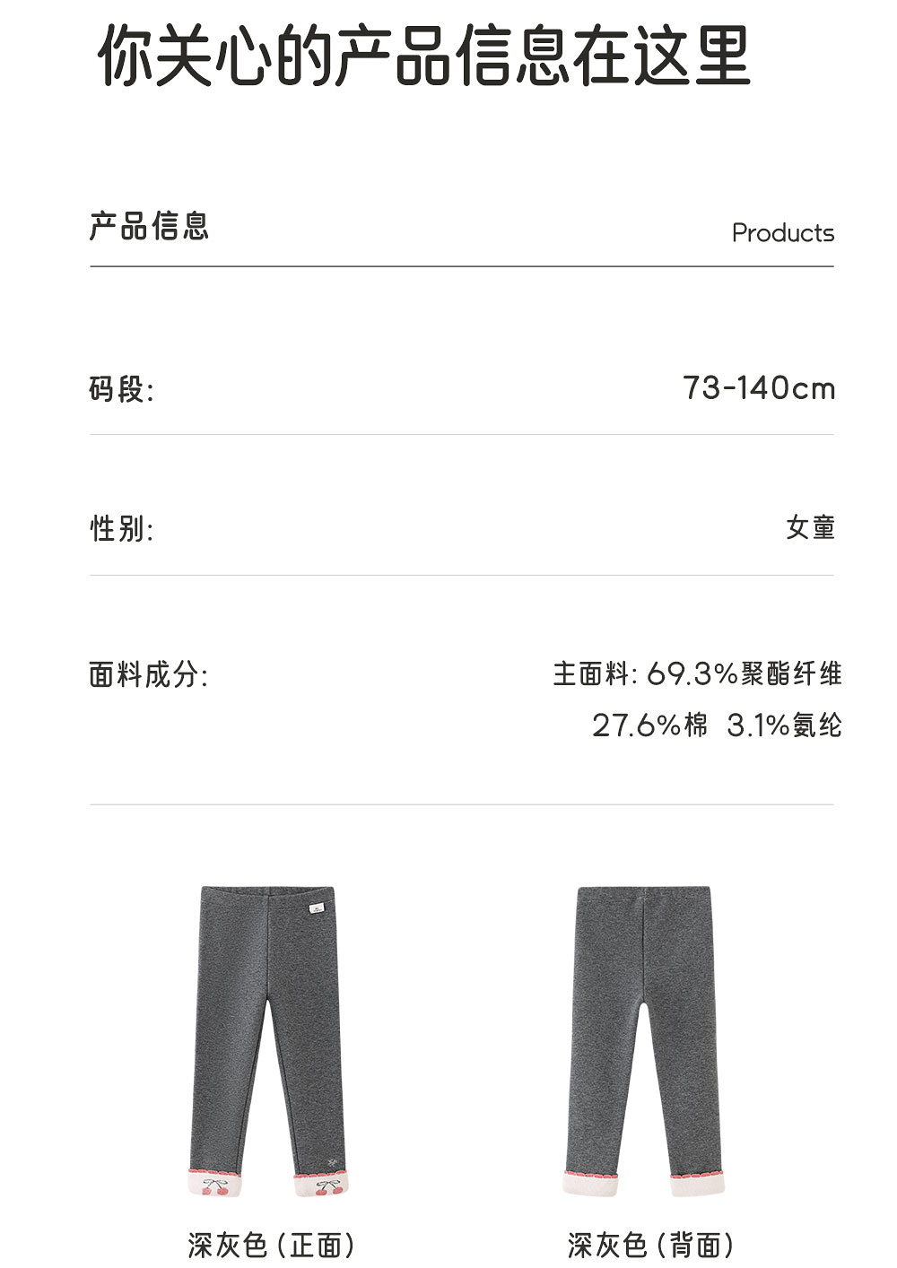 【商场同款】英氏女童裤子秋冬绒感保暖打底裤外出保暖女童长裤