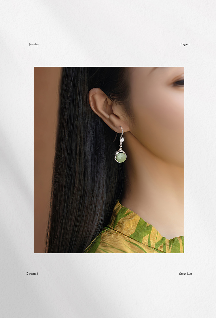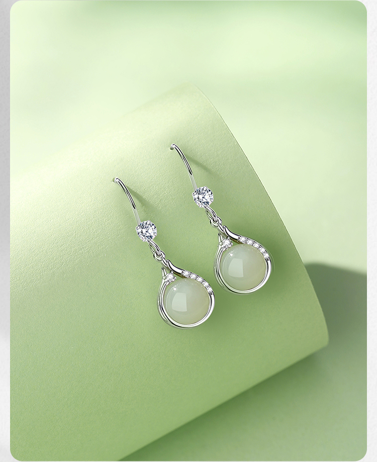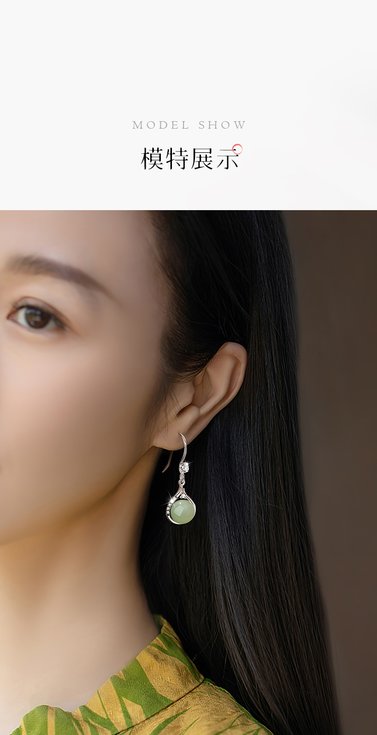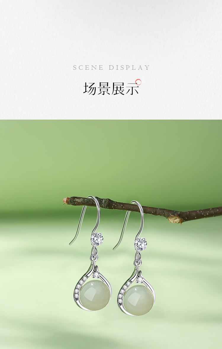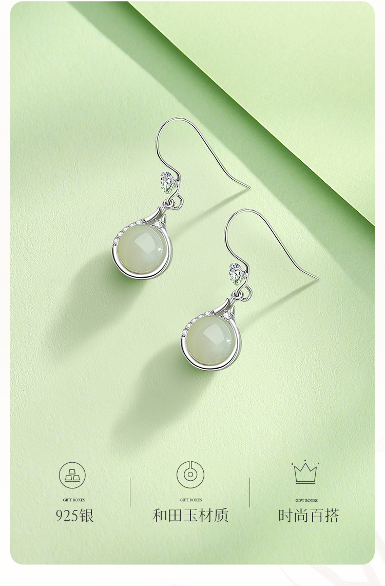 Winy925银定格珍爱耳环镶嵌和田玉配证书