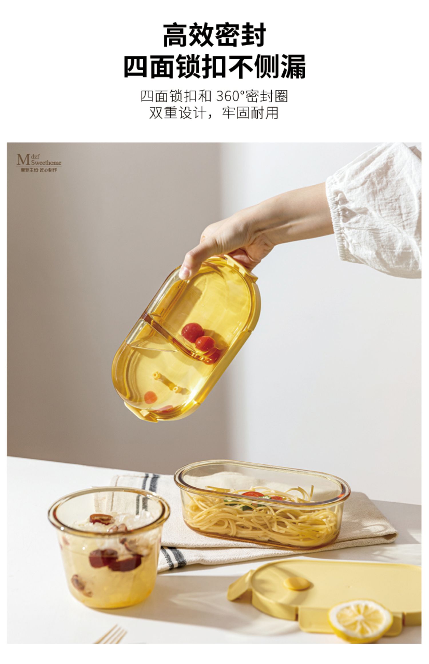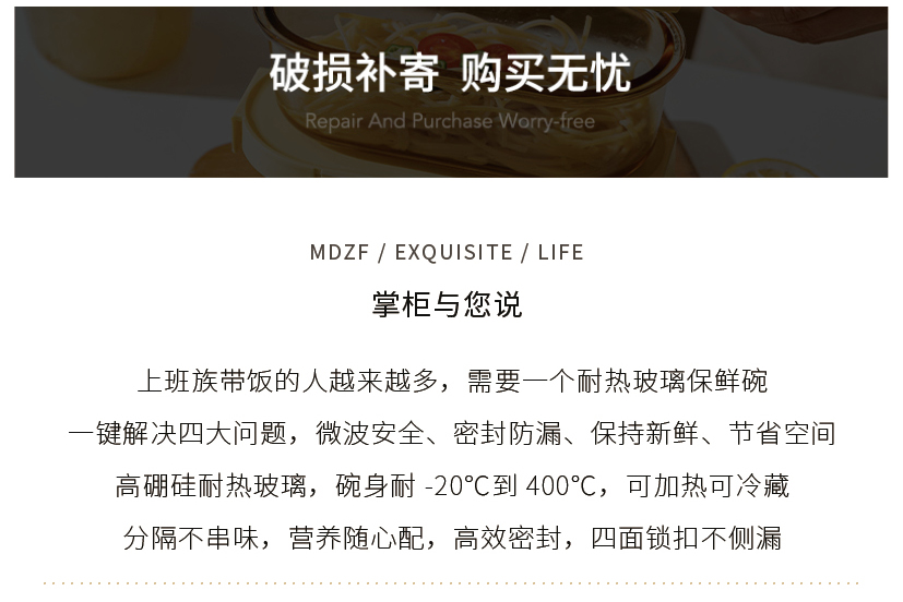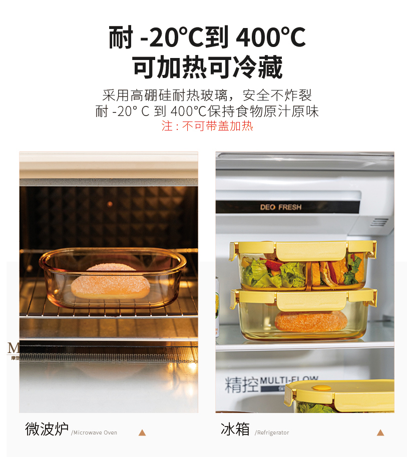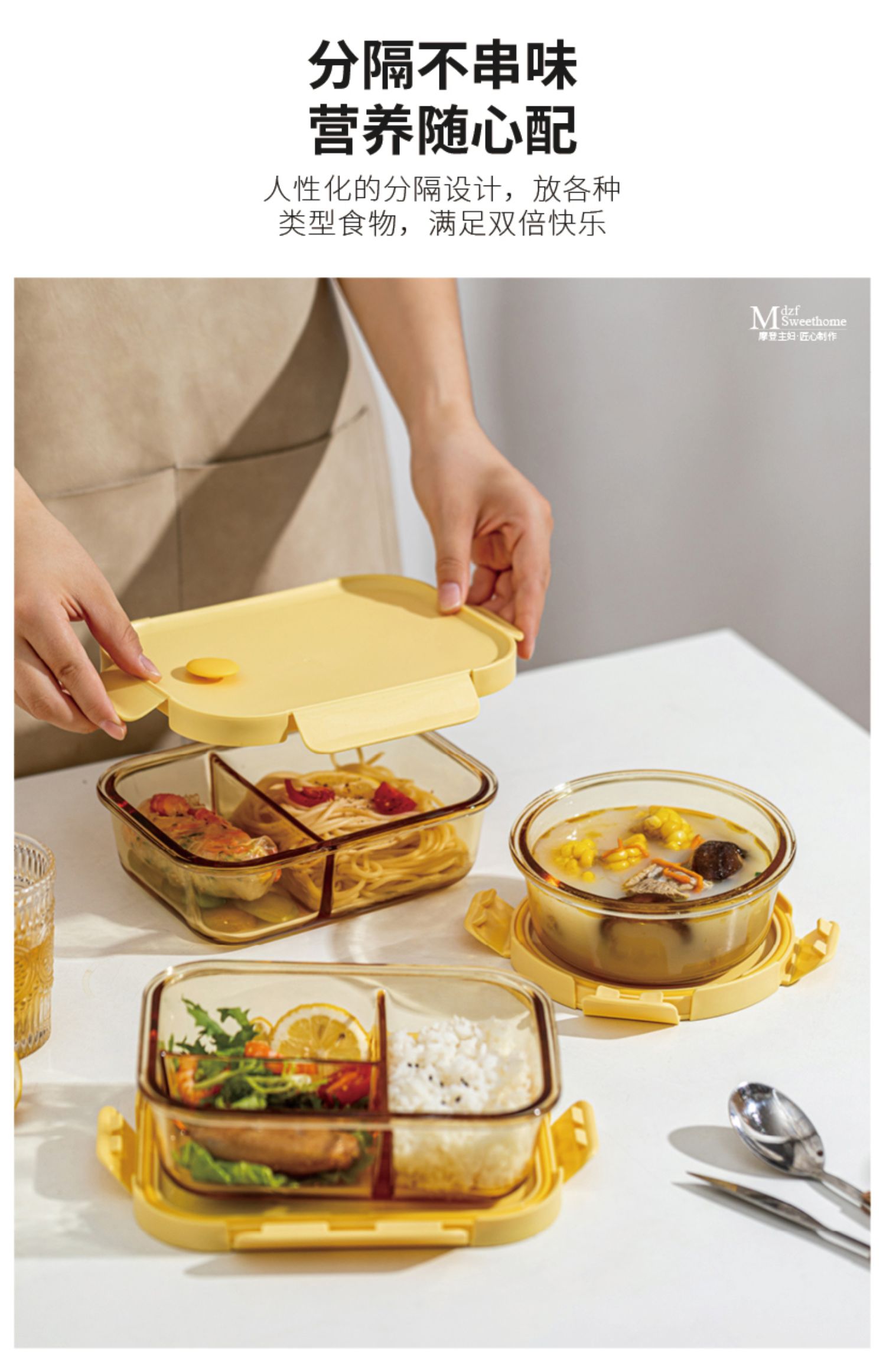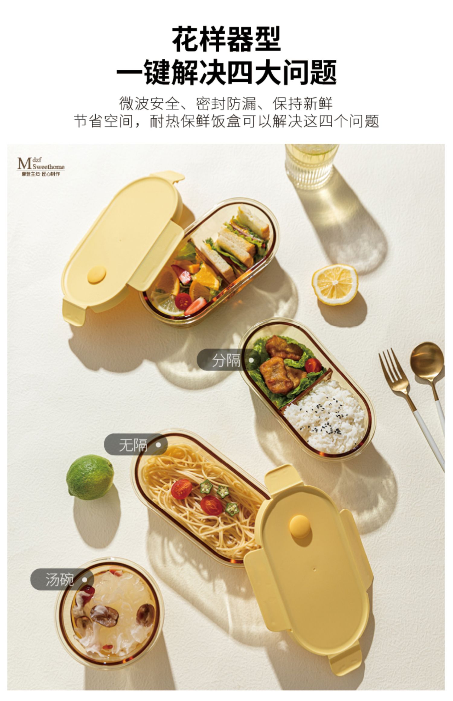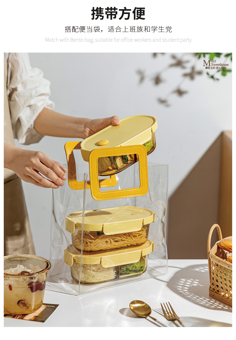 摩登主妇玻璃饭盒微波炉加热分隔保鲜盒带盖汤碗上班族密封便当盒